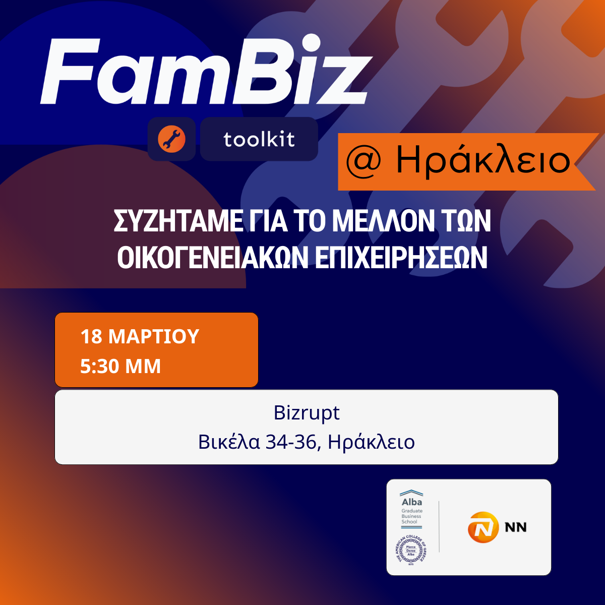 Nextdeal newsroom, 9/3/2026 - 09:18 facebook twitter linkedin Το Alba Graduate Business School και η NN Hellas φέρνουν το FamBiz Toolkit στο Ηράκλειο Nextdeal newsroom, 9/3/2026 facebook twitter linkedin Συζήτηση για τις ευκαιρίες και τις προκλήσεις των Οικογενειακών Επιχειρήσεων θα πραγματοποιηθεί στις 18 Μαρτίου 2026 στο Bizrupt. Στο πλαίσιο της επιτυχημένης πρωτοβουλίας FamBiz Toolkit, η NN Hellas και το Alba Graduate Business School, The American College of Greece, ανακοινώνουν την δεύτερη εκδήλωση εκτός Αθηνών, με τίτλο «FamBiz Toolkit @ Ηράκλειο: Συζητάμε για το μέλλον των οικογενειακών επιχειρήσεων». Η εκδήλωση, που εδραιώνει την επέκταση του προγράμματος σε πόλεις της περιφέρειας, θα πραγματοποιηθεί την Τετάρτη 18 Μαρτίου 2026, στις 17:30, στον χώρο του Bizrupt. Η πρωτοβουλία FamBiz Toolkit, η οποία έχει ήδη συμπληρώσει πάνω από δύο χρόνια επιτυχημένης πορείας, έχει καθιερωθεί ως ένα πολύτιμο εργαλείο γνώσης για τις οικογενειακές επιχειρήσεις, που αποτελούν τη ραχοκοκαλιά της ελληνικής οικονομίας. Στόχος του προγράμματος είναι η ενδυνάμωση των μελών των οικογενειακών επιχειρήσεων, με έμφαση στην επόμενη γενιά που προετοιμάζεται να αναλάβει τα ηνία. Η εκδήλωση τελεί υπό την αιγίδα του Επιμελητηρίου Ηρακλείου και του Αναπτυξιακού Συλλόγου Γυναικών Επιχειρηματιών Κρήτης. Στο επίκεντρο της εκδήλωσης θα βρεθούν δύο πάνελ συζήτησης με καταξιωμένους επιχειρηματίες και ειδικούς της αγοράς. Το πρώτο πάνελ με τίτλο «Σύγχρονες Προκλήσεις για τις Οικογενειακές Επιχειρήσεις» θα προσεγγίσει θέματα όπως η ψηφιακή μετάβαση, η εύρεση και διαχείριση ανθρώπινου δυναμικού, η ανάπτυξη και η εταιρική διακυβέρνηση στο πλαίσιο ESG. Στη συζήτηση θα συμμετέχουν οι Μανώλης Κασσάκης (Αλλαντικά Κασσάκη Ε.Ε.), Φώτης Κοκοτός (Ελούντα Α.Ε.), Παναγιώτης Χαρωνίτης (GEA Holidays DMC) και Ερμής Χονδρός (Caravel Rent a Car). Τη συζήτηση θα συντονίσει ο Αλέξης Κομσέλης, Διευθυντής του κέντρου επιχειρηματικότητας AHEAD του Alba Graduate Business School. Το δεύτερο πάνελ με τίτλο «Οικογενειακή Επιχείρηση & Γυναικεία Ηγεσία: Από την Πρόκληση στην Ευκαιρία» θα δώσει την αφορμή για μια ουσιαστική συζήτηση με επίκεντρο τις προκλήσεις και τις ευκαιρίες που αντιμετωπίζουν οι γυναίκες στις οικογενειακές επιχειρήσεις. Στη συζήτηση θα συμμετέχουν οι Αμαλία Νινιράκη (Εκπαιδευτικός οργανισμός ΟΛΟΚΛΗΡΩΣΗ), Γιούλη Σαββάκη (Savvakis -materials & more) και Χριστίνα Χρυσούλα (Taxidi Olive Farm). Τη συζήτηση θα συντονίσει η Αλεξάνδρα Καραπιδάκη, συνιδρύτρια του Bizrupt. Μετά το πέρας των συζητήσεων, θα ακολουθήσει δεξίωση δικτύωσης, δίνοντας την ευκαιρία στους συμμετέχοντες και συμμετέχουσες για περαιτέρω συζήτηση και ανταλλαγή απόψεων. Πληροφορίες Εκδήλωσης Ημερομηνία: Τετάρτη, 18 Μαρτίου 2026 Ώρα Προσέλευσης: 17:30 Χώρος: Bizrupt (Βικέλα 34-36, Ηράκλειο) Η συμμετοχή στην εκδήλωση είναι δωρεάν, ωστόσο απαιτείται προεγγραφή στον παρακάτω σύνδεσμο: https://fambiz.alba.acg.edu/fambiz-toolkit-heraklion-registration Ακολουθήστε το Nextdeal.gr στο Google News .