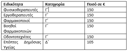 Nextdeal newsroom, 13/2/2023 - 13:37 facebook twitter linkedin Στα 200 ευρώ το επίδομα επικίνδυνης και ανθυγιεινής εργασίας - Νέες ειδικότητες δικαιούχων Nextdeal newsroom, 13/2/2023 facebook twitter linkedin Αυξάνεται στα 200 ευρώ το ανώτατο ύψος του επιδόματος επικίνδυνης και ανθυγιεινής εργασίας για απασχολούμενους στον τομέα της υγείας, καθώς επίσης για υπαλλήλους που ανήκουν και υπηρετούν στο Πυροσβεστικό Σώμα, ενώ παράλληλα διευρύνονται οι ειδικότητες εργαζομένων που μπορούν να λάβουν το συγκεκριμένο είδος επιδόματος. Τα παραπάνω προβλέπονται σε δύο Κοινές Υπουργικές Αποφάσεις (ΚΥΑ), που υπεγράφησαν από τον Αναπληρωτή Υπουργό Οικονομικών, κ. Θόδωρο Σκυλακάκη, τον Υπουργό Υγείας, κ. Αθανάσιο Πλεύρη και τον Υπουργό Εργασίας και Κοινωνικών Υποθέσεων, κ. Κωστή Χατζηδάκη. Η ΚΥΑ που αφορά στο Πυροσβεστικό Σώμα συνυπογράφεται από τον Υπουργό Κλιματικής Κρίσης και Πολιτικής Προστασίας, κ. Χρήστο Στυλιανίδη. Οι Αποφάσεις έχουν αναδρομική ισχύ από την 1η.1.2023. Οι παραπάνω αποφάσεις εντάσσονται στο πλαίσιο μεταρρύθμισης του καθεστώτος χορήγησης επιδόματος επικίνδυνης και ανθυγιεινής εργασίας στο Δημόσιο. Για τα υπόλοιπα Υπουργεία θα ακολουθήσουν αντίστοιχες Αποφάσεις για τις κατηγορίες δικαιούχων, το αμέσως επόμενο χρονικό διάστημα. Με τις ρυθμίσεις της πρώτης ΚΥΑ επιχειρείται η μεταρρύθμιση του καθεστώτος χορήγησης του επιδόματος επικίνδυνης και ανθυγιεινής εργασίας, που καταβάλλεται στους υπαλλήλους του Υπουργείου Υγείας, οι οποίοι εντάσσονται στις ρυθμίσεις του ενιαίου μισθολογικού νόμου. Η μεταρρύθμιση επιφέρει διεύρυνση ως προς το ύψος του καταβαλλόμενου επιδόματος, αλλά και ως προς τις ειδικότητες, αυξάνοντας κατ’ αυτόν τον τρόπο τον αριθμό των δικαιούχων.Ειδικότερα, το επίδομα καθορίζεται σε πέντε νέες κατηγορίες, ως εξής: Α΄ Κατηγορία: 200 € (από 150 €, που ίσχυε μέχρι πρότινος) Β΄ Κατηγορία: 165 € (από 105 €) Γ΄ Κατηγορία: 150 € (από 70 €) Δ΄ Κατηγορία: 105 € (από 35 €) Ε΄ Κατηγορία: 70 € (από 30 €). Αξίζει να επισημανθεί πως η πλειονότητα των εργαζομένων στα νοσοκομεία κατατάσσεται σε ανώτερη κατηγορία. Χαρακτηριστικό παράδειγμα αποτελεί το νοσηλευτικό προσωπικό, το οποίο συνεχίζει να κατατάσσεται στην Α’ κατηγορία του επιδόματος, ύψους 200 ευρώ, έναντι 150 ευρώ (αύξηση 33%). Παράλληλα, στο τεχνικό προσωπικό των νοσοκομείων αμβλύνονται αμφισημίες ως προς την καταβολή του επιδόματος και προσδιορίζονται συγκεκριμένες ειδικότητες δικαιούχων, στις οποίες καταβάλλεται, πλέον, υψηλότερο επίδομα, από 70 ευρώ σε 150 ευρώ (αύξηση 114% - ειδικότητες τεχνικού προσωπικού που εντάσσονται στην Γ΄ κατηγορία). Επιπλέον, εντάσσονται ως νέοι δικαιούχοι εργαζόμενοι των νοσοκομείων αρκετών ειδικοτήτων, όπως είναι οι παρακάτω: Επιπροσθέτως, με τις ρυθμίσεις της παρούσας ΚΥΑ επιχειρείται διεύρυνση των δικαιούχων του επιδόματος επικίνδυνης και ανθυγιεινής εργασίας σε εργαζόμενους συγκεκριμένων ειδικοτήτων, που απασχολούνται σε νομικά πρόσωπα εποπτευόμενα από το Υπουργείο Υγείας, όπως είναι τα εξής: Εθνικό Κέντρο Αιμοδοσίας, ΟΚΑΝΑ & ΚΕΘΕΑ, Εθνικό Κέντρο Αποκατάστασης, Ελληνικό Κέντρο Ψυχικής Υγιεινής και Ερευνών και Ινστιτούτο Υγείας Παιδιού. 2η ΚΥΑ - Πυροσβεστικό Σώμα Με τις ρυθμίσεις της δεύτερης ΚΥΑ επιχειρείται η μεταρρύθμιση και ο εξορθολογισμός του επιδόματος επικίνδυνης και ανθυγιεινής εργασίας των υπαλλήλων που ανήκουν και υπηρετούν στο Πυροσβεστικό Σώμα και εμπίπτουν στις ρυθμίσεις του ενιαί