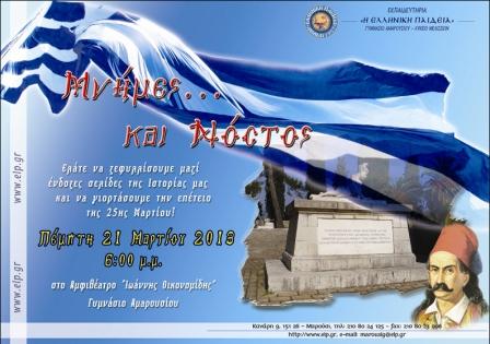 Nextdeal newsroom, 20/3/2013 - 09:09 facebook twitter linkedin Εκπαιδευτήρια Η Ελληνική Παιδεία: Εορταστική εκδήλωση Nextdeal newsroom, 20/3/2013 facebook twitter linkedin Τα εκπαιδευτήρια "Η Ελληνική Παιδεία" σας προσκαλούν την Πέμπτη 21 Μαρτίου 2013, 6:00 μ.μ. στο αμφιθέατρο "ΙΩΑΝΝΗΣ ΟΙΚΟΝΟΜΙΔΗΣ" του Γυμνασίου Αμαρουσίου "Η ΕΛΛΗΝΙΚΗ ΠΑΙΔΕΙΑ", για να παρακολουθήσετε την εορταστική εκδήλωση της επετείου της 25ης Μαρτίου 1821: ΜΝΗΜΕΣ ΚΑΙ ΝΟΣΤΟΣΗ γιορτή αυτή δεν είναι σαν τις γιορτές που ξέρεις... αξίζει τον κόπο.Ένας νεαρός Ελληνοαμερικάνος από τη Νέα Υόρκη, αποβιβάζεται στο αεροδρόμιο «Ελευθέριος Βενιζέλος».Είναι ο Markos Botsaris, μακρινός «απόγονος» του Αγωνιστή, που ποτέ δεν ξέχασε το δέος που ένιωσε παιδί, όταν οι γονείς του τον έφεραν στο Μεσολόγγι να δει τον τάφο του πάππου του.Και τώρα να... ο νεαρός Μάρκος έρχεται ξανά.Με δική του απόφαση... Οργάνωση εκδήλωσης: Λύκειο Μελισσίων και Γυμνάσιο Αμαρουσίου "Η ΕΛΛΗΝΙΚΗ ΠΑΙΔΕΙΑ" Μουσική σύνθεση: κ. Κωνσταντίνος Γκίκας. Συμμετεχει η ορχήστρα των Σχολείων. Πατήστε τους συνδέσμους στο Δείτε επίσης για να δείτε την πρόσκληση και το πρόγραμμα της εκδήλωσης. Ακολουθήστε το Nextdeal.gr στο Google News .
