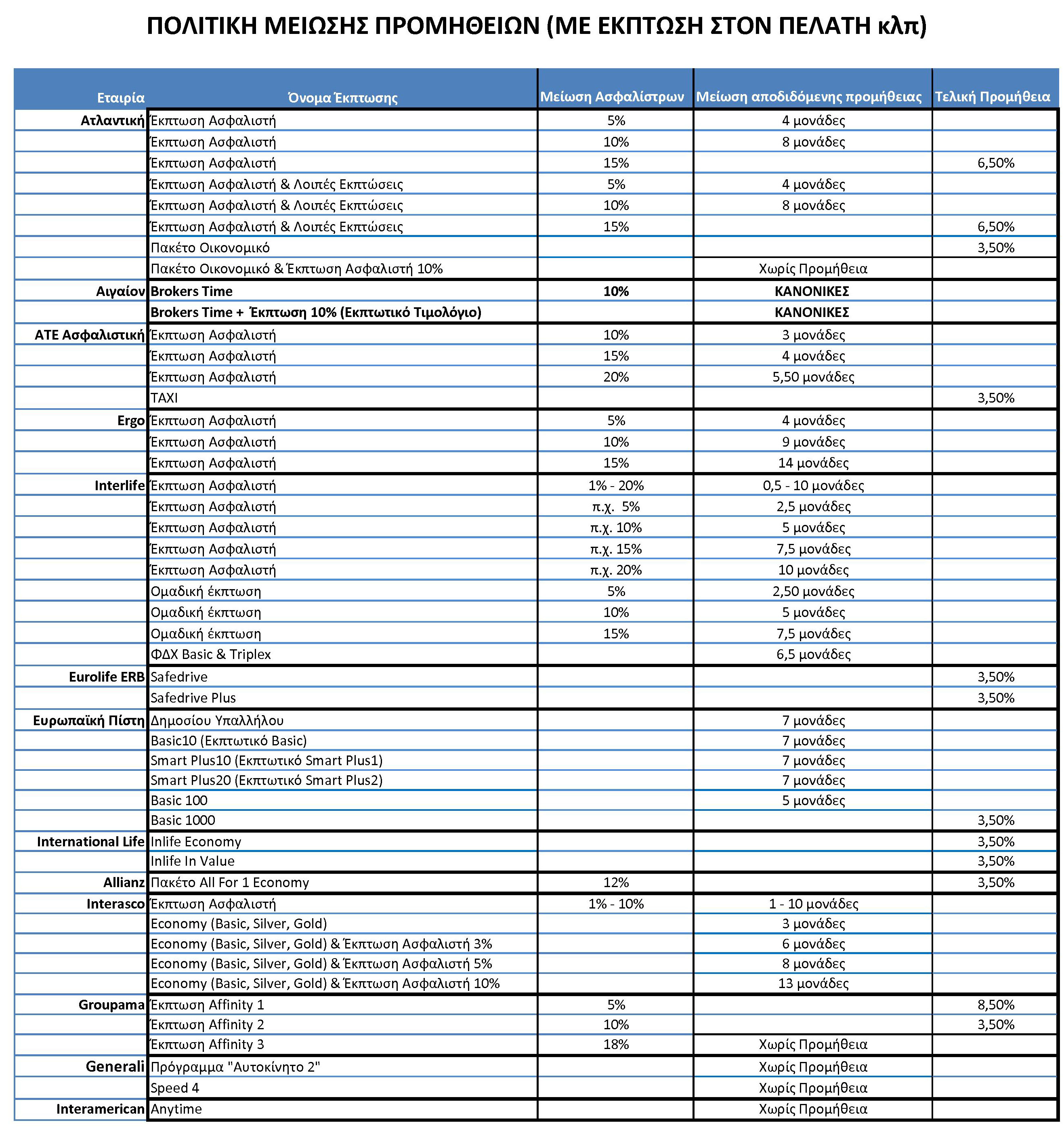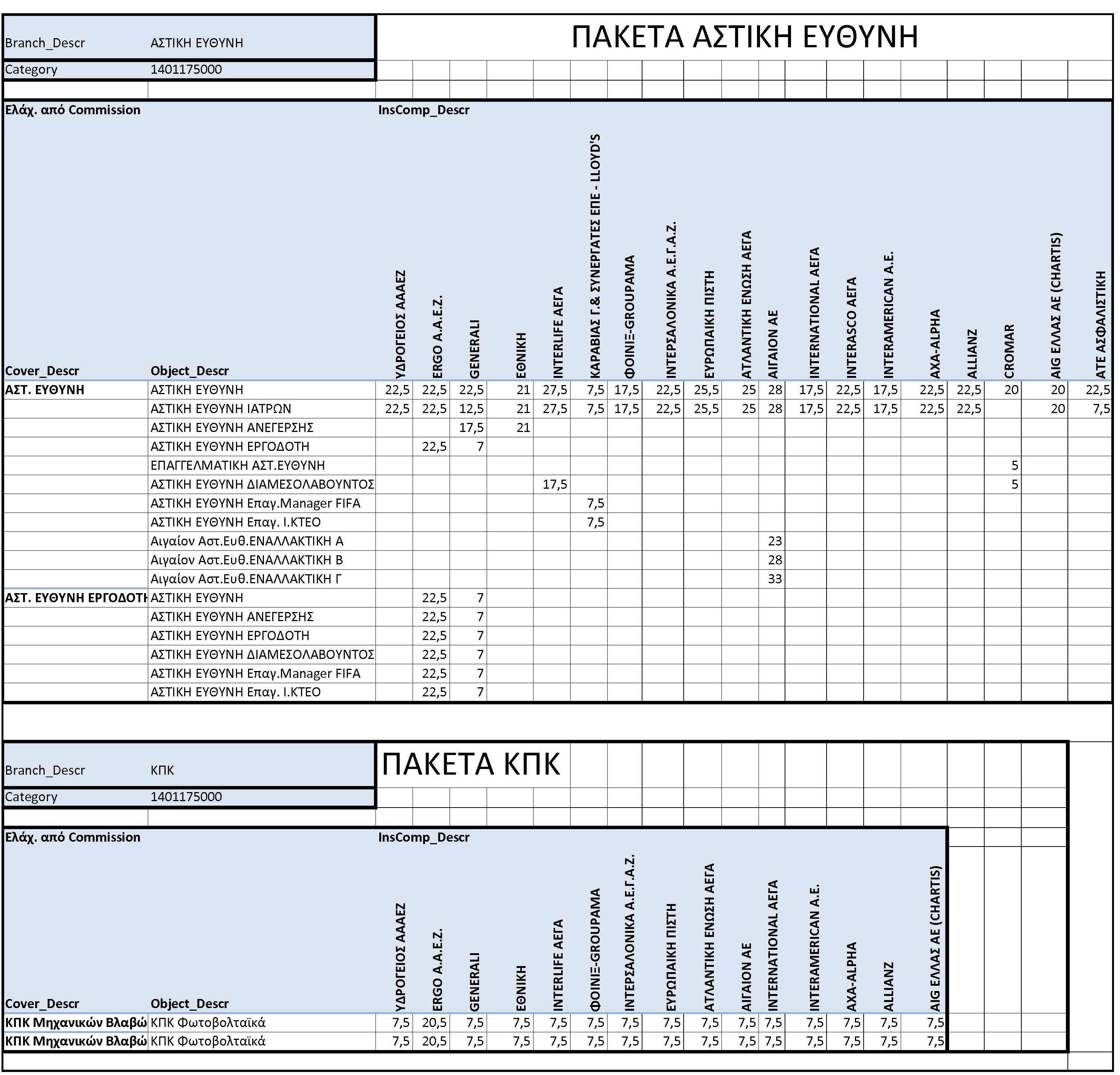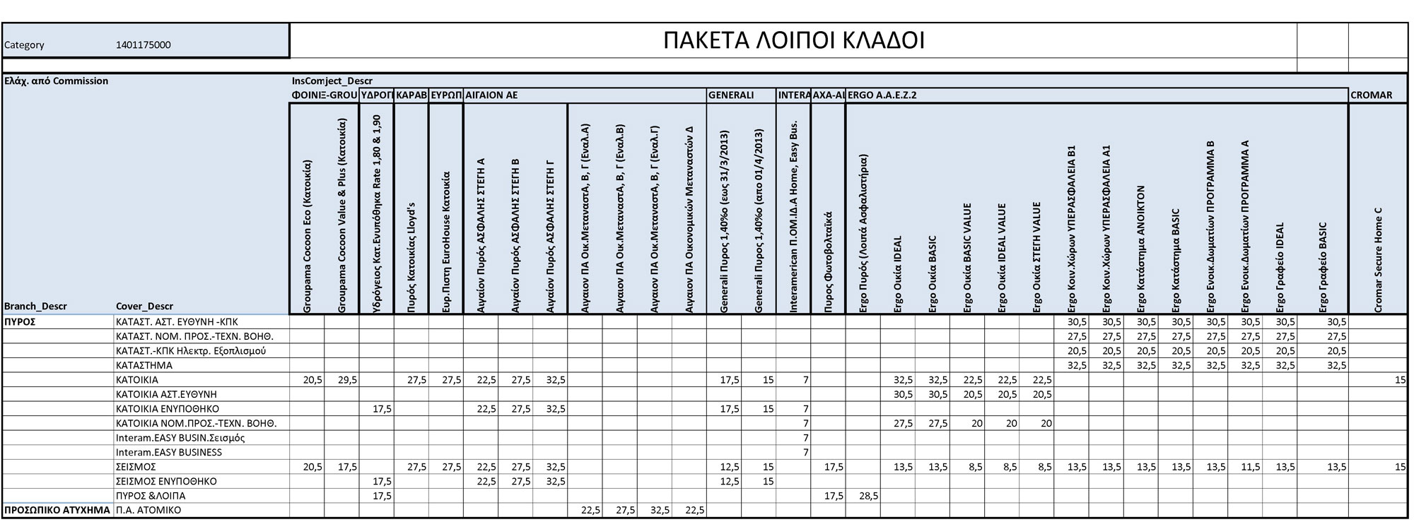 Nextdeal newsroom, 17/1/2014 - 10:04 facebook twitter linkedin Οι ενημερωμένοι πίνακες προμηθειών της INFOTRUST για πακέτα και μεμονωμένες καλύψεις (από 1.1.2014) Nextdeal newsroom, 17/1/2014 facebook twitter linkedin Το τμήμα Συμβάσεων της INFOTRUST ΜΕΣΙΤΕΣ ΑΣΦΑΛΕΙΩΝ ΜΕ ΤΗΝ Νο 2/2014/15-1-2014 εγκύκλιο προς το Δίκτυο συνεργατών ενημέρωσε για το τι ισχύει από 1.1.2014 στις προμήθειες. Το www.nextdeal.gr δίνει μια εικόνα και για το πώς κινείται η αγορά στις Γενικές ασφαλίσεις. Δείτε τους πίνακες (πατήστε πάνω στους πίνακες για μεγέθυνση) ή πατήστε ΕΔΩ. Ακολουθήστε το Nextdeal.gr στο Google News .