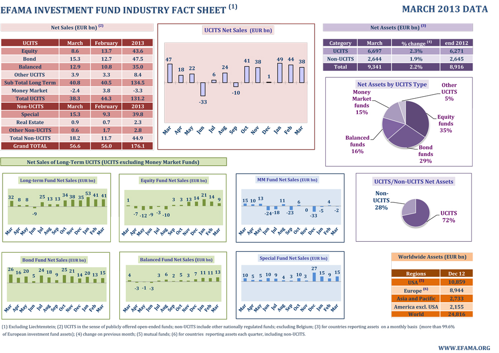 Nextdeal newsroom, 23/5/2013 - 07:45 facebook twitter linkedin Πώς κινήθηκαν οι επενδύσεις τον Μάρτιο Nextdeal newsroom, 23/5/2013 facebook twitter linkedin Οι εξελίξεις του Μαρτίου στην Ευρωπαϊκή αγορά των συλλογικών επενδύσεων συνοψίζονται ως εξής: Οι ΟΣΕΚΑ συνέχισαν να καταγράφουν εισροές ύψους €38 δισ. το Μάρτιο, έναντι €44 δισ. εισροών του Φεβρουαρίου. Αυτή η μικρή μείωση οφείλεται στη μεταστροφή των καθαρών πωλήσεων των Αμοιβαίων Κεφαλαίων Χρηματαγοράς. Οι μακροπρόθεσμοι ΟΣΕΚΑ (δηλαδή ΟΣΕΚΑ εκτός ΑΚ Χρηματαγοράς) κατέγραψαν για δεύτερο συνεχόμενο μήνα καθαρές εισροές ύψους €41 δισ. Οι καθαρές εισροές στα Ομολογιακά αυξήθηκαν και ανήλθαν στα € 15 δισ. από τα €13 δισ. του Φεβρουαρίου. Οι καθαρές πωλήσεις στα Μετοχικά ΑΚ κατήλθαν στα €9 δισ., από τα €14 δισ. του Φεβρουαρίου. Οι καθαρές πωλήσεις των Μικτών ΑΚ αυξήθηκαν το Μάρτιο στα €13 δισ. από τα € 11 δισ. του προηγούμενου μήνα. Τα ΑΚ Χρηματαγοράς παρουσίασαν μία μεταστροφή στις καθαρές πωλήσεις κατά τη διάρκεια του Μαρτίου και κατέγραψαν εκροές ύψους €2 δισ. σε σχέση με τις εισροές των €4 δισ. του Φεβρουαρίου. Οι καθαρές πωλήσεις των μη-ΟΣΕΚΑ αυξήθηκαν το Μάρτιο στα €18 δισ., από τα €12 δισ. του Φεβρουαρίου. Οι καθαρές εισροές των special funds, τα οποία απευθύνονται αποκλειστικά σε θεσμικούς επενδυτές (πχ. Συνταξιοδοτικά ταμεία), αυξήθηκαν στα €15 δισ. το Μάρτιο σε σχέση με τις εισροές των €9 δισ. του προηγούμενου μήνα. Το συνολικό ενεργητικό των ΟΣΕΚΑ αυξήθηκε το Μάρτιο κατά 2,3% και διαμορφώθηκε στα €6.697 δισ.. Το συνολικό ενεργητικό των μη-ΟΣΕΚΑ παρουσίασε και αυτό μηνιαία αύξηση ύψους 1,9% και ανήλθε στα €2.644 δισ. στο τέλος του μήνα. Το συνολικό ενεργητικό της ευρωπαϊκής αγοράς των συλλογικών επενδύσεων ανήλθε στα €9.341 δισ. στο τέλος Μαρτίου Παρά την αβεβαιότητα που προκάλεσε το πακέτο διάσωσης για την Κύπρο, το σύνολο των καθαρών πωλήσεων των ΟΣΕΚΑ και των μη ΟΣΕΚΑ παρέμεινε το Μάρτιο στο ίδιο υψηλό επίπεδο όπως και το Φεβρουάριο, υπογραμμίζοντας την εμπιστοσύνη των επενδυτών για τις προοπτικές των επενδύσεων. Πατήστε πάνω στην εικόνα για μεγέθυνση. Ακολουθήστε το Nextdeal.gr στο Google News .