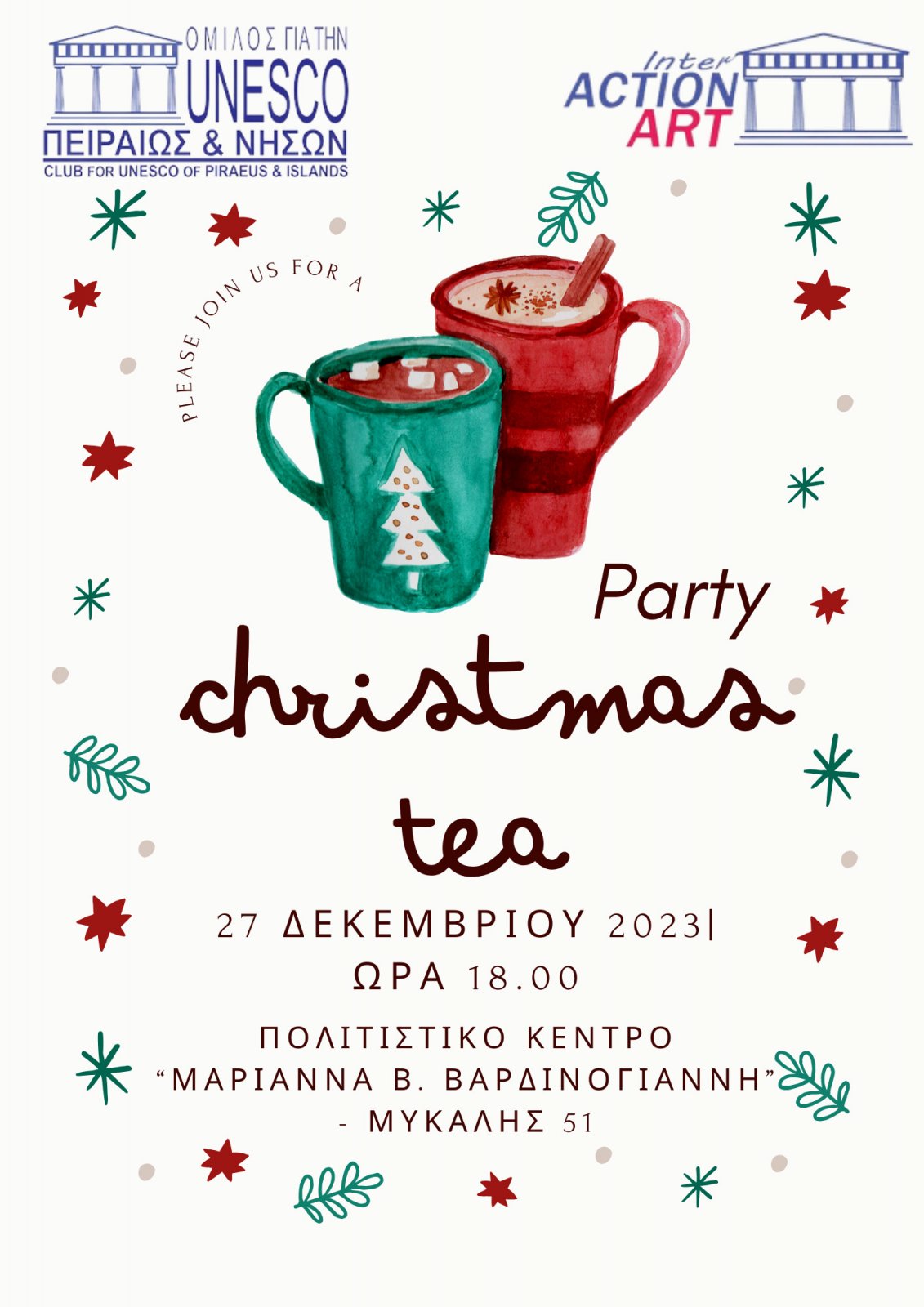 Nextdeal newsroom, 20/12/2023 - 16:01 facebook twitter linkedin Christmas Tea Party από τον Όμιλο της Unesco Πειραιώς & Νήσων! Nextdeal newsroom, 20/12/2023 facebook twitter linkedin Σε Christmas Tea Party σας προσκαλεί ο Όμιλος Unesco Πειραιώς & Νήσων, το οποίο θα πραγματοποιηθεί στις 27 Δεκεμβρίου 2023 και ώρα 18:00 στο Πολιστιστικό Κέντρο "Μαριάννα Β. Βαρδινογιάννη" (Μυκάλης 51, Πειραιάς 18540). Ακολουθήστε το Nextdeal.gr στο Google News .
