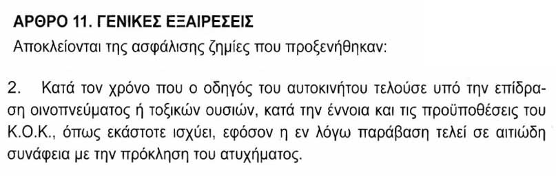 Nextdeal newsroom, 9/5/2018 - 10:20 facebook twitter linkedin Το σοβαρό τροχαίο στον Κηφισό, το αλκοόλ και η ασφαλιστική αποζημίωση Nextdeal newsroom, 9/5/2018 facebook twitter linkedin Ένα σημαντικό θέμα που αναδύεται μέσα από το σοβαρό τροχαίο που έγινε στον Κηφισό με υπαίτιο οδηγό νταλίκας είναι η οδήγηση υπό την επήρεια του αλκοόλ (σχετικό θέμα δημοσίευσε ο Μέντωρ Διαμεσολαβητής στο nextdeal.gr στις 20/02/2018 - Δείτε εδώ ) Αρκετοί οδηγοί ύστερα από κατανάλωση αλκοόλ παραβλέπουν την κατάσταση της αντίληψης τους και οδηγούν θέτοντας σε κίνδυνο τον εαυτό τους και τρίτες ανθρώπινες ζωές. Σύμφωνα με τον Κώδικα Οδικής Κυκλοφορίας οδηγός σε κατάσταση μέθης θεωρείται ο οδηγός που βρίσκεται υπό την επίδραση οινοπνεύματος ποσοστού στον οργανισμό του από 0,50 γραμμάρια ανά λίτρο αίματος (0,50 g/l) και άνω μετρούμενο με τη μέθοδο της αιμοληψίας ή από 0,25 χιλιοστά του γραμμαρίου ανά λίτρο εμπνεόμενου αέρα και άνω μετρούμενου με την συσκευή του αλκοολομέτρου. Αρκεί να σημειωθεί πως ένας οδηγός δύναται να συγκεντρώσει 0,50 γραμμάρια αλκοόλ στο αίμα του και να ξεπεράσει το επιτρεπόμενο όριο πίνοντας ενδεικτικά 490 ml μπύρας, 200 ml κρασί, 60 ml ούζο, 55 ml ουίσκι ή βότκα και πάντοτε ανάλογα το βάρος, την ηλικία, το φύλο, την κατανάλωση τροφής πριν το ποτό κ.α. Η οδήγηση υπό την επήρεια αλκοόλ αλλά και άλλων τοξικών ουσιών αποτελεί μια Γενική Εξαίρεση των ασφαλιστηρίων οχημάτων όλων των εταιρειών και ο οδηγός που θα δημιουργήσει οδικό ατύχημα με σωματικές βλάβες και υλικές ζημιές προς τρίτους υπό την επήρεια ουσιών θα βρεθεί αντιμέτωπος με ιδιαίτερα σοβαρές συνέπειες. Δείτε εδώ το σχετικό απόσπασμα για τον «Οδηγό υπό την επήρεια αλκοόλ» μέσα από τις γενικές εξευρέσεις συμβολαίων οχημάτων των εταιρειών ενδεικτικά Generali, AIG, Interasco και Prime Insurance, όμοιους όλων των εταιρειών: Generali AIG NEWSLETTER Λάβετε τα καλύτερα του Nextdeal στα εισερχόμενά σας, κάθε μέρα. Interasco Prime Insurance ©Μέντωρ Διαμεσολαβητής Ακολουθήστε το Nextdeal.gr στο Google News .