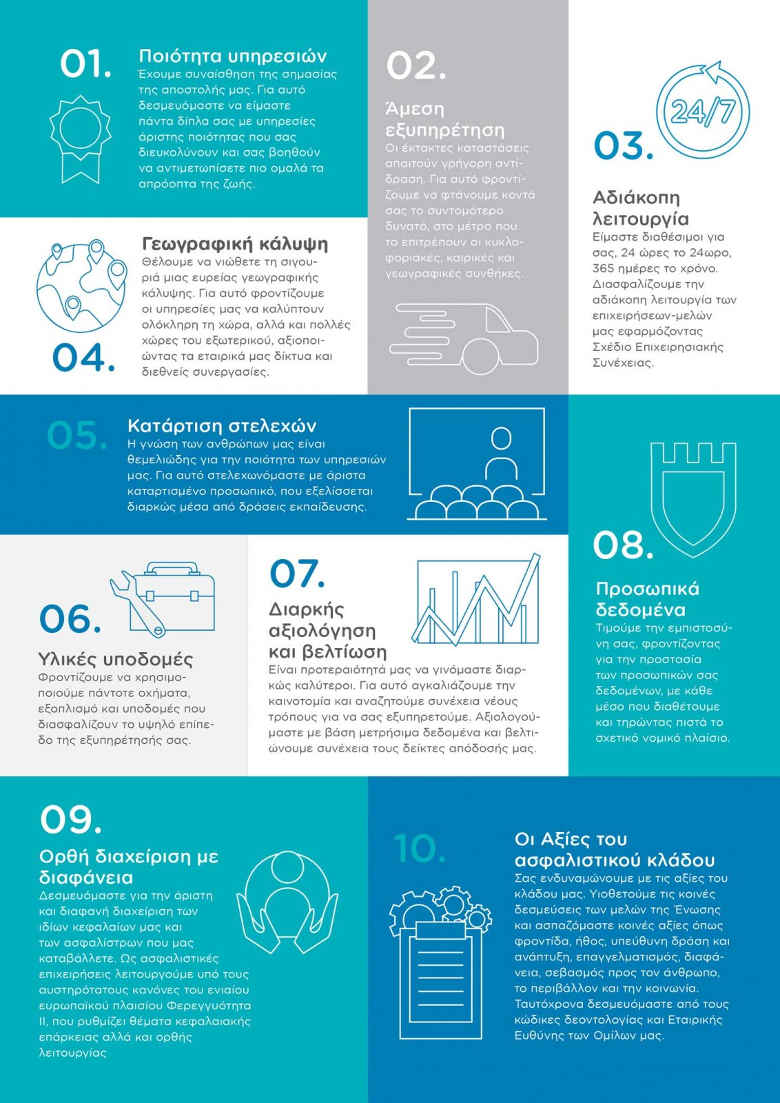 Nextdeal newsroom, 20/6/2018 - 12:58 facebook twitter linkedin Δείτε τον Κώδικα Δεοντολογίας Εταιριών Οδικής Βοήθειας! Nextdeal newsroom, 20/6/2018 facebook twitter linkedin Μια σύμβαση αξιών που θέτει τον ασφαλισμένο στο επίκεντρο του ενδιαφέροντος Σε συνέχεια της παρουσίασης του νέου Κώδικα Δεοντολογίας της Ένωσης Ασφαλιστικών Εταιριών Ελλάδος (ΕΑΕΕ), η ΕΑΕΕ προχωράει σε μια ακόμα κίνηση ενίσχυσης της σχέσης εμπιστοσύνης που έχει αναπτύξει με τους ασφαλισμένους, παρουσιάζοντας τον Κώδικα Δεοντολογίας Εταιριών Οδικής Βοήθειας. Ο νέος Κώδικας Δεοντολογίας περιλαμβάνει τις αρχές, τις αξίες και τις δεσμεύσεις που οικοδομούν την υπεύθυνη επιχειρηματική λειτουργία των εταιρειών οδικής βοήθειας μελών της ΕΑΕΕ, εξασφαλίζοντας παράλληλα μία έντιμη, ειλικρινή και διάφανη σχέση με τον ασφαλισμένο. Μεταξύ άλλων, οι εταιρίες οδικής βοήθειας, οι οποίες ανταποκρίνονται σε 1.200.000 εξυπηρετήσεις ετησίως (βλάβες – ατυχήματα), δεσμεύονται για αποτελεσματική εξυπηρέτηση, διασφάλιση προσωπικών δεδομένων, μέτρηση ποιότητας με δείκτες και εφαρμογή κώδικα ηθικής και εταιρικής κοινωνικής ευθύνης. Με αφορμή την ανακοίνωση της δέσμης αξιών και δεσμεύσεων εταιριών οδικής βοήθειας, ο κ. Γιώργος Βαλαής, Υπεύθυνος στην ΕΑΕΕ για τα θέματα οδικής βοήθειας, δήλωσε: «Ο Κώδικας Δεοντολογίας των εταιριών οδικής βοήθειας περιλαμβάνει τις βασικές αρχές που διέπουν τη λειτουργία τους, για να μπορούν οι ασφαλισμένοι να απολαμβάνουν τα οφέλη της ασφάλισης, με αξιοπιστία. Πρόκειται ουσιαστικά για μια ακόμα πράξη απόδειξης ότι οι εταιρίες του κλάδου μας επιθυμούν να χτίσουν μια σχέση με γερά θεμέλια με τους ασφαλισμένους, η οποία θα στηρίζεται στην ειλικρίνεια και τη διαφάνεια. Από την πλευρά μας, βρισκόμαστε σε απόλυτη συμφωνία και συνεργασία με το σύνολο των μελών Εταιριών Οδικής Βοήθειας με στόχο να συνεχίσουμε προς την ίδια κατεύθυνση αναδεικνύοντας την αξία της ασφάλισης σε όλους και ενισχύοντας παράλληλα τις σχέσεις εμπιστοσύνης με το κοινό». Ο Κώδικας Δεοντολογίας αποτελεί ένα σύνολο κανόνων ο οποίος θα λειτουργήσει ως ένας πρακτικός οδηγός για όλες τις δράσεις και τις ενέργειες των εταιρειών οδικής βοήθειας μελών της ΕΑΕΕ, από τις πιο απλές και καθημερινές, ως τις πιο σημαντικές και σύνθετες. Συγκεκριμένα: 1. Ποιότητα υπηρεσιών Έχουμε συναίσθηση της σημασίας της αποστολής μας. Για αυτό δεσμευόμαστε να είμαστε πάντα δίπλα σας με υπηρεσίες άριστης ποιότητας που σας διευκολύνουν και σας βοηθούν να αντιμετωπίσετε πιο ομαλά τα απρόοπτα της ζωής. 2. Άμεση εξυπηρέτηση Οι έκτακτες καταστάσεις απαιτούν γρήγορη αντίδραση. Για αυτό φροντίζουμε να φτάνουμε κοντά σας το συντομότερο δυνατό, στο μέτρο που το επιτρέπουν οι κυκλοφοριακές, καιρικές και γεωγραφικές συνθήκες. NEWSLETTER Λάβετε τα καλύτερα του Nextdeal στα εισερχόμενά σας, κάθε μέρα. 3. Αδιάκοπη λειτουργία Είμαστε διαθέσιμοι για σας, 24 ώρες το 24ωρο, 365 ημέρες το χρόνο. Διασφαλίζουμε την αδιάκοπη λειτουργία των επιχειρήσεων-μελών μας εφαρμόζοντας Σχέδιο Επιχειρησιακής Συνέχειας. 4. Γεωγραφική κάλυψη Θέλουμε να νιώθετε τη σιγουριά μιας ευρείας γεωγραφικής κάλυψης. Για αυτό φροντίζουμε οι υπηρεσίες μας να καλύπτουν ολόκληρη τη χώρα, αλλά και πολλές χώρες του εξωτερικού, αξιοποιώντας τα εταιρικά μας δίκτυα και διεθνείς συνεργασίες. 5. Κατάρτιση στελεχών Η γνώση των ανθρώπων μας είναι θεμελιώδης για την ποιότητα των υπηρεσιών μας. Για αυτό στελεχωνόμαστε με άρισ