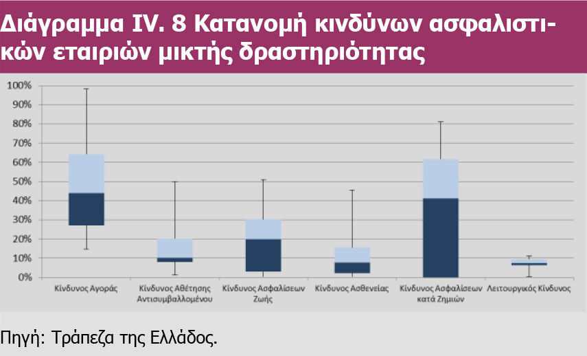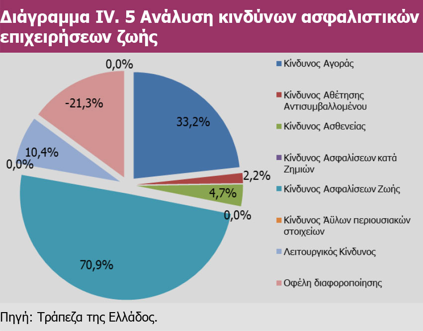 Nextdeal newsroom, 23/11/2018 - 10:36 facebook twitter linkedin Επάρκεια κεφαλαίων καλής ποιότητας εμφανίζει η ελληνική ασφαλιστική αγορά Nextdeal newsroom, 23/11/2018 facebook twitter linkedin Τους κινδύνους για το σύνολο της ελληνικής ασφαλιστικής αγοράς αναλύει, μεταξύ άλλων, η Τράπεζα της Ελλάδος στην "Επισκόπηση του Ελληνικού Χρηματοπιστωτικού Συστήματος". Ειδικότερα, από την ανάλυση των κινδύνων για τα έτη 2016-2017 διαφαίνεται ότι μέσα στο 2017 υπήρξε σημαντική μείωση των Κινδύνων Αθέτησης Αντισυμβαλλομένου (-2,6%) και Ασφαλίσεων κατά Ζημιών (-4,2%) και παράλληλη αύξηση των Κινδύνων Αγοράς (+1,6%) και Ασφαλίσεων Ζωής (+5,7%). Όσο αφορά την φερεγγυότητα των ασφαλιστικών επιχειρήσεων, η ΤτΕ αναφέρει ότι παρά το δυσμενές οικονομικό περιβάλλον, η ελληνική ασφαλιστική αγορά εμφανίζει επάρκεια κεφαλαίων καλής ποιότητας. Η Κεφαλαιακή Απαίτηση Φερεγγυότητας (SCR) για το σύνολο της ασφαλιστικής αγοράς στις 31.12.2017 διαμορφώθηκε σε 1,8 δισεκ. ευρώ, με τα συνολικά επιλέξιμα ίδια κεφάλαια να ανέρχονται σε 3,1 δισεκ. ευρώ. Επιπροσθέτως, η συνολική Ελάχιστη Κεφαλαιακή Απαίτηση (MCR) διαμορφώθηκε σε 658 εκατ. ευρώ, με τα αντίστοιχα συνολικά επιλέξιμα ίδια κεφάλαια να ανέρχονται σε 2,98 δισεκ. ευρώ και να αφορούν εξολοκλήρου κεφάλαια Κατηγορίας 1. Η παρούσα Επισκόπηση εστιάζεται στις εξελίξεις στον τραπεζικό τομέα που έλαβαν χώρα κατά το πρώτο εξάμηνο του 2018 (διαβάστε εδώ την Επισκόπηση). Η Επισκόπηση του Ελληνικού Χρηματοπιστωτικού Συστήματος αξιολογεί τις εξελίξεις, εντοπίζει τους κύριους παράγοντες των συστημικών κινδύνων του ελληνικού τραπεζικού τομέα και των λοιπών κλάδων του χρηματοπιστωτικού συστήματος και αναλύει τη λειτουργία των υποδομών των χρηματοπιστωτικών αγορών (συστημάτων πληρωμών, ηλεκτρονικών μέσων πληρωμής, συστημάτων διακανονισμού τίτλων και κεντρικού αντισυμβαλλόμενου). Επιπλέον, η Επισκόπηση περιλαμβάνει τρία Ειδικά Θέματα. Στο πρώτο παρουσιάζεται μία πρόταση συστημικής διαχείρισης των Mη Eξυπηρετούμενων Aνοιγμάτων, ενώ στο δεύτερο περιγράφεται ο προσδιορισμός των λοιπών συστημικά σημαντικών πιστωτικών ιδρυμάτων στην Ελλάδα και o καθορισμός του αποθέματος ασφαλείας O-SII. Στο τρίτο Ειδικό Θέμα περιγράφεται η επίδραση της πρώτης εφαρμογής του Διεθνούς Προτύπου Χρηματοοικονομικής Αναφοράς 9 (ΔΠΧΑ 9) στον τραπεζικό τομέα. Με την αξιολόγηση των συστημικών κινδύνων παρέχεται ένα βασικό εργαλείο για την άσκηση της μακροπροληπτικής πολιτικής, η οποία έχει ως στόχο τη μείωση των συστημικών κινδύνων του χρηματοπιστωτικού συστήματος και θα πρέπει να συμπληρώνει τη μικροπροληπτική εποπτεία των τραπεζών, που επικεντρώνεται περισσότερο στην ευρωστία των μεμονωμένων ιδρυμάτων. Αναλυτικά, η Επισκόπηση του Ελληνικού Χρηματοπιστωτικού Συστήματος της Τράπεζας της Ελλάδος αναφέρει τα εξής: 1. ΑΣΦΑΛΙΣΤΙΚΕΣ ΕΠΙΧΕΙΡΗΣΕΙΣ 1.1 ΟΙ ΚΙΝΔΥΝΟΙ ΤΩΝ ΑΣΦΑΛΙΣΤΙΚΩΝ ΕΠΙΧΕΙΡΗΣΕΩΝ Συγκεντρωτικά, η ανάλυση των κινδύνων για το σύνολο της ελληνικής ασφαλιστικής αγοράς κατά την 31/12/2017 φαίνεται στο Διάγραμμα IV.1 Η αντίστοιχη ανάλυση των κινδύνων για το σύνολο της ελληνικής ασφαλιστικής αγοράς ένα έτος πριν (31/12/2016) φαίνεται στο διάγραμμα IV.2. Από τη σύγκριση των δύο ανωτέρω διαγραμμάτων διαφαίνεται ότι μέσα στο 2017 υπήρξε σημαντική μείωση των Κινδύνων Αθέτησης Αντισυμβαλλομένου (-2,6%) και Ασφαλίσεων κατά Ζημιών (-4,2%) και παράλληλη αύξηση των Κινδύνων Αγοράς (+1,6%) και Ασφαλίσεων Ζωής (+5,7%). Ασφαλιστικές επιχειρήσεις κατά ζη