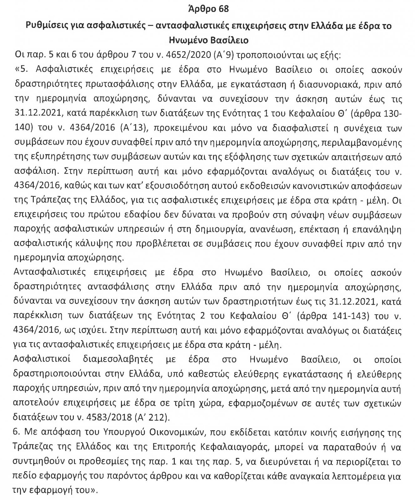 Nextdeal newsroom, 18/12/2020 - 11:40 facebook twitter linkedin Τι αναφέρει το πολυνομοσχέδιο του υπ. Υγείας για τις (αντ)ασφαλιστικές επιχειρήσεις στην Ελλάδα με έδρα το Ηνωμένο Βασίλειο Nextdeal newsroom, 18/12/2020 facebook twitter linkedin Ρυθμίσεις για τις ασφαλιστικές και αντασφαλιστικές επιχειρήσεις στην Ελλάδα με έδρα το Ηνωμένο Βασίλειο περιλαμβάνει, μεταξύ άλλων, το νέο πολυνομοσχέδιο του Υπουργείου Υγείας που κατατέθηκε το βράδυ της Πέμπτης στη Βουλή (δείτε εδώ). Ειδικότερα, το άρθρο 68 αναφέρει τα εξής: Ακολουθήστε το Nextdeal.gr στο Google News .