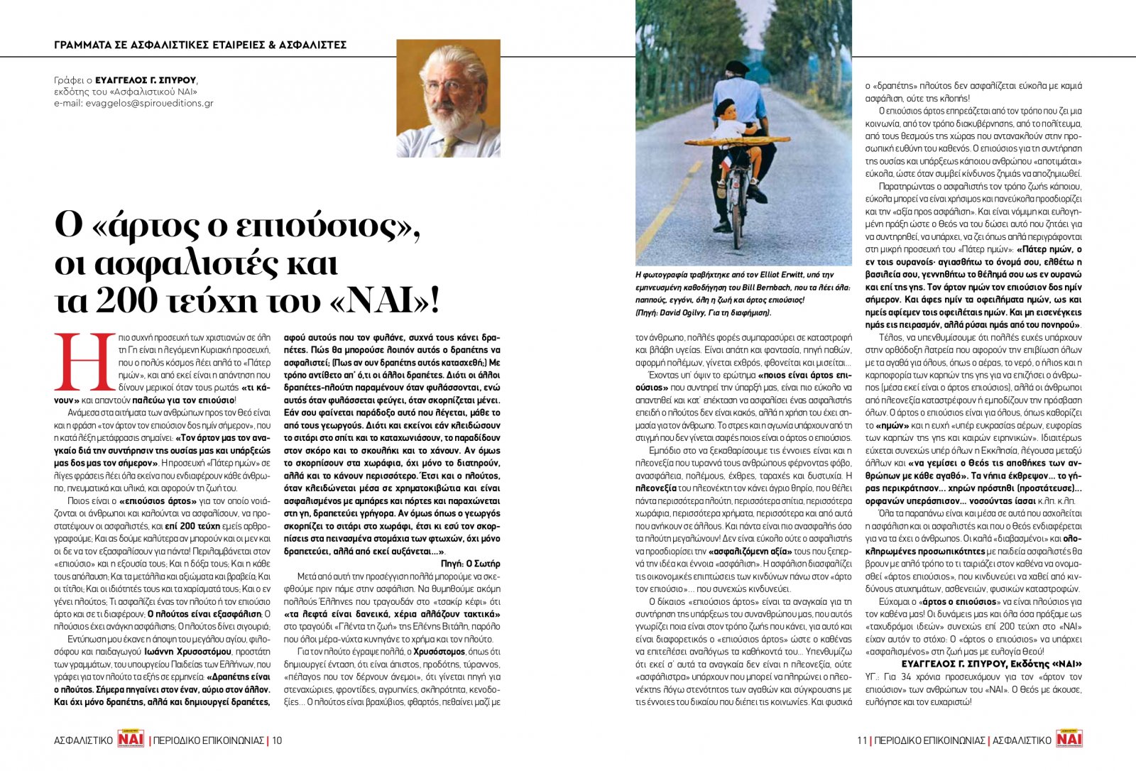 Ευάγγελος Γ. Σπύρου, 7/3/2023 - 14:17 facebook twitter linkedin Ο «άρτος ο επιούσιος», οι ασφαλιστές & τα 200 Τεύχη του «ΝΑΙ»! Ευάγγελος Γ. Σπύρου, 7/3/2023 facebook twitter linkedin Γράφει ο Ευάγγελος Γ. Σπύρου Η πιο συχνή προσευχή των Χριστιανών σε όλη τη Γη, είναι η λεγόμενη Κυριακή προσευχή, που ο πολύς κόσμος λέει απλά το «Πάτερ ημών», και από εκεί είναι η απάντηση που δίνουν μερικοί όταν τους ρωτάς «τι κάνουν» και απαντούν παλεύω για τον επιούσιο! Ανάμεσα στα αιτήματα των ανθρώπων προς τον Θεό είναι και η φράση «τον άρτον τον επιούσιον δος ημίν σήμερον», που η κατά λέξη μετάφρασις σημαίνει: «Τον άρτον μας τον αναγκαίο δια την συντήρησιν της ουσίας μας και υπάρξεώς μας δος μας τον σήμερον». Η προσευχή «Πάτερ ημών» σε λίγες φράσεις λέει όλα εκείνα που ενδιαφέρουν κάθε άνθρωπο, πνευματικά και υλικά και αφορούν τη ζωή του. Ποιος είναι ο «επιούσιος άρτος» για τον οποίο νοιάζονται οι άνθρωποι και καλούνται να ασφαλίσουν, να προστατέψουν οι ασφαλιστές, και επί 200 τεύχη εμείς αρθρογραφούμε; Και ας δούμε καλύτερα αν μπορούν και οι μεν και οι δε να τον εξασφαλίσουν για πάντα! Περιλαμβάνεται στον «επιούσιο» και η εξουσία τους; Και η δόξα τους; Και η κάθε τους απόλαυση; Και τα μετάλλια και αξιώματα και βραβεία; Και οι τίτλοι; Και οι ιδιότητες τους και τα χαρίσματά τους; Και ο εν γένει πλούτος; Τι ασφαλίζει ένας τον πλούτο ή τον επιούσιο άρτο και τι διαφέρουν; Ο πλούτος είναι εξασφάλιση; Ο πλούσιος έχει ανάγκη ασφάλισης; Ο πλούτος δίνει σιγουριά; Εντύπωση μου έκανε η άποψη του μεγάλου αγίου, φιλοσόφου και παιδαγωγού Ιωάννη Χρυσοστόμου, προστάτη των γραμμάτων, του Υπουργείου Παιδείας των Ελλήνων, που γράφει για τον πλούτο τα εξής σε ερμηνεία: «Δραπέτης είναι ο πλούτος. Σήμερα πηγαίνει στον έναν, αύριο στον άλλον. Και όχι μόνο δραπέτης, αλλά και δημιουργεί δραπέτες, αφού αυτούς που τον φυλάνε, συχνά τους κάνει δραπέτες. Πως θα μπορούσε λοιπόν αυτός ο δραπέτης να ασφαλιστεί; (πως αν ουν δραπέτης αυτός κατασχεθή; ). Με τρόπο αντίθετο απ’ ότι οι άλλοι δραπέτες. Διότι οι άλλοι δραπέτες-πλούτη παραμένουν όταν φυλάσσονται, ενώ αυτός όταν φυλάσσεται φεύγει, όταν σκορπίζεται μένει. Εάν σου φαίνεται παράδοξο αυτό που λέγεται, μάθε το από τους γεωργούς. Διότι και εκείνοι εάν κλειδώσουν το σιτάρι στο σπίτι και το καταχωνιάσουν, το παραδίδουν στον σκόρο και το σκουλήκι και το χάνουν. Αν όμως το σκορπίσουν στα χωράφια, όχι μόνο το διατηρούν αλλά και το κάνουν περισσότερο. Έτσι και ο πλούτος όταν κλειδώνεται μέσα σε χρηματοκιβώτια και είναι ασφαλισμένος με αμπάρες και πόρτες και παραχώνεται στη γη, δραπετεύει γρήγορα. Αν όμως όπως ο γεωργός σκορπίζει το σιτάρι στο χωράφι, έτσι κι εσύ τον σκορπίσεις στα πεινασμένα στομάχια των φτωχών, όχι μόνο δραπετεύει αλλά από εκεί αυξάνεται…». Πηγή: Ο Σωτήρ Μετά από αυτή την προσέγγιση πολλά μπορούμε να σκεφθούμε πριν πάμε στην ασφάλιση. Να θυμηθούμε ακόμη πολλούς Έλληνες που τραγουδάν στο «τσακίρ κέφι» ότι «τα λεφτά είναι δανεικά, χέρια αλλάζουν τακτικά» στο τραγούδι «Γλέντα τη Ζωή» της Ελένης Βιτάλη, παρ’ όλων ότι όλοι μέρα-νύχτα κυνηγάνε το χρήμα και τον πλούτο. Για τον πλούτο έγραψε πολλά, ο Χρυσόστομος, όπως ότι δημιουργεί ένταση, ότι είναι άπιστος, προδότης, τύραννος, «πέλαγος που τον δέρνουν άνεμοι», ότι γίνεται πηγή για στεναχώριες, φροντίδες, αγρυπνίες, σκληρότητα, κενοδοξίες… Ο πλούτος είναι βραχύβιος, φθαρτός, πεθαίνει μαζί με τον άνθρωπο, πολλές φορές συμπαρα