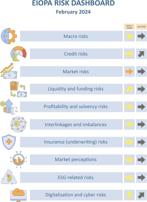 Nextdeal newsroom, 16/2/2024 - 10:33 facebook twitter linkedin Εξελίξεις στο τομέα της Εποπτείας και χρηματοοικονομικής λειτουργίας των ασφαλιστικών επιχειρήσεων όπως ενημερώνει η Ένωση Ασφαλιστικών Εταιριών Ελλάδος με στοιχεία EIOPA Nextdeal newsroom, 16/2/2024 facebook twitter linkedin Στο πλαίσιο της τακτικής ενημέρωσής για τις εξελίξεις στον τομέα της εποπτείας και χρηματοοικονομικής λειτουργίας των ασφαλιστικών επιχειρήσεων, η Ένωση Ασφαλιστικών Εταιριών Ελλάδος θέλει να θέσει υπόψη τις δημοσιεύσεις που έλαβαν πρόσφατα χώρα από την ΕΙΟΡΑ: (α) Risk Dashboard ΕΙΟΡΑ Σε συνέχεια προηγούμενων Εγκυκλίων μας, σας ενημερώνουμε ότι στις 5 Φεβρουαρίου 2024 η EIOPA δημοσίευσε τον Πίνακα Κινδύνων (Risk Dashboard) για τις δραστηριοποιούμενες στην Ε.Ε. ασφαλιστικές επιχειρήσεις υπό το φως των στοιχείων του τρίτου τριμήνου του 2023 (Q3 2023 (εδώ). Θυμίζουμε ότι πρόκειται για Πίνακα που εκδίδει η ΕΙΟΡΑ σε τακτική βάση με σύνοψη των κυριότερων κινδύνων και ευπαθειών που εντοπίζονται στον ευρωπαϊκό ασφαλιστικό τομέα, μέσω ενός συνόλου δεικτών κινδύνου κατά την εκάστοτε περίοδο αναφοράς. Ως κυριότερα συμπεράσματα σημειώνονται τα εξής: Παρ’ ότι μακροοικονομικοί κίνδυνοι εξακολουθούν να υφίστανται στον ασφαλιστικό τομέα και οι προβλέψεις κάνουν λόγο για υποτονικές προοπτικές για την αύξηση του ΑΕΠ, παρατηρείται πτωτική τάση, κυρίως λόγω της μείωσης του πληθωρισμού σε όλες τις εξεταζόμενες γεωγραφικές περιοχές. Οι πιστωτικοί κίνδυνοι παραμένουν σταθεροί σε μεσαίο επίπεδο, με τα spreads να μειώνονται έως ένα βαθμό περί τα τέλη του 2023. Οι κίνδυνοι αγοράς συνιστούν προεξέχουσα περιοχή κινδύνου, καθώς η αστάθεια στην αγορά ομολόγων παραμένει αυξημένη και οι τιμές των εμπορικών ακινήτων έχουν υποχωρήσει περαιτέρω. Οι κίνδυνοι ρευστότητας και χρηματοδότησης παραμένουν σε μεσαίο επίπεδο. Η διάμεση τιμή των διαθεσίμων μετρητών μειώθηκε ελαφρά σε σύγκριση με το προηγούμενο τρίμηνο. Οι κίνδυνοι κερδοφορίας και φερεγγυότητας παραμένουν σταθεροί με ελαφρά μείωση της αναλογίας στοιχείων του ενεργητικού έναντι στοιχείων του παθητικού και του δείκτη φερεγγυότητας των ασφαλιστικών ομίλων. Οι κίνδυνοι διασυνδέσεων και ανισορροπιών είναι επίσης σταθεροί σε μεσαίο επίπεδο. Τα ανοίγματα σε τράπεζες, κρατικό χρέος και σε παράγωγα, καθώς και το αντασφαλισμένο μέρος των ασφαλίστρων έχουν σημειώσει ελαφρά μείωση σε σύγκριση με τα προηγούμενα τρίμηνα. Οι ασφαλιστικοί κίνδυνοι παραμένουν σε μεσαίο επίπεδο με την παραγωγή ασφαλίστρων να σημειώνει ετήσια αύξηση τόσο για τις δραστηριότητες των ασφαλίσεων ζωής όσο και για τις ασφαλίσεις ζημιών. Ταυτόχρονα όμως παρατηρείται περαιτέρω επιδείνωση του δείκτη ζημιών (loss ratio). Οι κίνδυνοι που συνδέονται με τους ESG παράγοντες παραμένουν σταθεροί σε μεσαίο επίπεδο. Η διάμεση έκθεση σε περιουσιακά στοιχεία που σχετίζονται με το κλίμα κυμαίνεται γύρω στο 3,3% του συνολικού ενεργητικού, με τις επενδύσεις των ασφαλιστικών επιχειρήσεων σε πράσινα ομόλογα να ανέρχονται περίπου στο 7% του συνόλου των διαθέσιμων στη αγορά πράσινων ομολόγων. Η ψηφιοποίηση και οι cyber κίνδυνοι μειώθηκαν σε μεσαίο επίπεδο, εντούτοις εκτιμάται ότι θα αυξηθούν σύμφωνα με σχετική αξιολόγηση των εθνικών εποπτικών αρχών (NSAs). Ο ετήσιος ρυθμός μεταβολής της συχνότητας των περιστατικών στον κυβερνοχώρο που επηρεάζουν όλους τους τομείς δραστηριότητας, όπως μετράται σύμφωνα με τα τελευταία δημόσια διαθέσιμα στοιχεία, πα