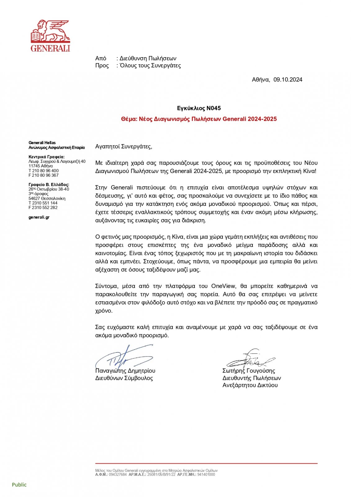 Nextdeal newsroom, 10/10/2024 - 09:15 facebook twitter linkedin Generali goes China! Nextdeal newsroom, 10/10/2024 facebook twitter linkedin Στην Κίνα ταξιδεύει η Generali! Νέο Διαγωνισμό Πωλήσεων 2024-2025 ανακοίνωσε η Generali. Δείτε την εγκύκλιο παρακάτω! Ακολουθήστε το Nextdeal.gr στο Google News .