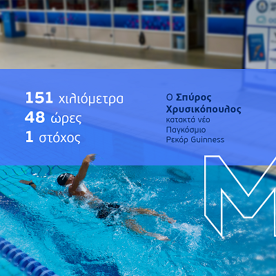 Nextdeal newsroom, 25/7/2025 - 16:00 facebook twitter linkedin Νέο Ρεκόρ Guinness από τον Σπύρο Χρυσικόπουλο - Η ΜΙΝΕΤΤΑ Ασφαλιστική υπερήφανα στο πλευρό του από το 2018! Nextdeal newsroom, 25/7/2025 facebook twitter linkedin Ο αθλητισμός μας δίνει εξαιρετικές συγκινήσεις και στιγμές έμπνευσης! Μια τέτοια στιγμή μας πρόσφερε και το επίτευγμα του κολυμβητή υπεραποστάσεων Σπύρου Χρυσικόπουλου ο οποίος κατέκτησε για δεύτερη φορά ρεκόρ Guinness. Ο Σπύρος κολύμπησε συνολικά 151χλμ. στην εσωτερική πισίνα 50 μέτρων του Ο.Α.Κ.Α. από την Παρασκευή 18 Ιουλίου μέχρι την Κυριακή 20 Ιουλίου, μένοντας άυπνος για 48 ώρες, και καταφέρνοντας να ξεπεράσει κατά 1000 μέτρα το όριο των 150χλμ. που χρειαζόταν για να κατοχυρωθεί το ρεκόρ. Ο ξεχωριστός αυτός υπεραθλητής κατέχει ήδη ένα ακόμη ρεκόρ Guinness από το 2021 για τα περισσότερα χλμ. κολύμβησης σε πισίνα σε 7 ημέρες, όταν κατάφερε να κολυμπήσει 358,2χλμ., αποσπώντας διεθνή αναγνώριση! Έχει επίσης ολοκληρώσει απίστευτα αθλητικά εγχειρήματα τα τελευταία χρόνια, όπως η διαδρομή από τη Ρόδο στο Καστελόριζο τον Σεπτέμβριο του 2022, απόσταση 130χλμ. στην ανοιχτή θάλασσα, την οποία κολύμπησε συνεχόμενα σε 64 ώρες και 5 λεπτά! Η ΜΙΝΕΤΤΑ Ασφαλιστική, επί σειρά ετών, στέκεται υπερήφανη στο πλευρό αυτού του μοναδικού αθλητή, ο οποίος με απίστευτη δύναμη ψυχής κυνηγάει και επιτυγχάνει στόχους που φαντάζουν άπιαστοι και αποδεικνύει ότι τα όρια τα θέτει η ανθρώπινη θέληση! Συγχαρητήρια Σπύρο! Ακολουθήστε το Nextdeal.gr στο Google News .