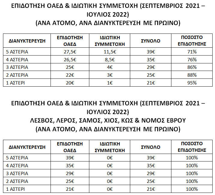 Nextdeal newsroom, 20/5/2021 - 14:32 facebook twitter linkedin Ξεκινούν τα προγράμματα Κοινωνικού Τουρισμού ΟΑΕΔ-ΟΠΕΚΑ για την περίοδο 2021-2022 Nextdeal newsroom, 20/5/2021 facebook twitter linkedin Το Υπουργείο Εργασίας και Κοινωνικών Υποθέσεων ανακοινώνει τα νέα προγράμματα Κοινωνικού Τουρισμού για την περίοδο 2021-2022, δηλαδή το ευρύ πρόγραμμα που υλοποιεί ο ΟΑΕΔ και την ειδική δράση για τους αγρότες που υλοποιεί ο ΟΠΕΚΑ. Σύμφωνα με το Υπουργείο, τα προγράμματα αυτά θα δώσουν επιπλέον ώθηση στον ελληνικό τουρισμό, σε συνδυασμό με την νέα δέσμη στήριξης του κλάδου που ανακοινώθηκε προχθές. Ειδικότερα, το πρόγραμμα Κοινωνικού Τουρισμού του ΟΑΕΔ που θα «τρέξει» κατά την περίοδο 1η Αυγούστου 2021 - 31 Ιουλίου 2022 έχει προϋπολογισμό ύψους 30 εκατ. ευρώ, ποσό που καλύπτει 300.000 επιταγές. Με δεδομένο ότι μέχρι τις 31 Ιουλίου 2021 μπορούν να ενεργοποιήσουν τις επιταγές τους και οι περίπου 300.000 δικαιούχοι του περσινού προγράμματος, που δεν το έπραξαν νωρίτερα λόγω περιοριστικών μέτρων και lockdown, το πολλαπλασιαστικό όφελος για τον τουρισμό αναμένεται να είναι πολύ μεγαλύτερο. Πρόκειται για ένα πρόγραμμα ιδιαίτερα ελκυστικό, καθώς χαρακτηρίζεται από αυξημένες επιδοτήσεις στους δικαιούχους (έως και το 100% σε ορισμένες περιπτώσεις) και μειωμένη έως μηδενική ιδιωτική συμμετοχή στο κόστος της διανυκτέρευσης στα τουριστικά καταλύματα που λαμβάνουν μέρος. Μάλιστα, ειδικά για τον Αύγουστο, το ποσοστό της επιδότησης του ΟΑΕΔ θα αυξηθεί κατά 20%, ώστε να υπάρξει ακόμα μεγαλύτερη στήριξη του τουριστικού κλάδου και συμμετοχή των επιχειρήσεων κατά την «αιχμή» της περιόδου. Οι δικαιούχοι και ωφελούμενοι μπορούν να πραγματοποιήσουν έως 6 διανυκτερεύσεις σε τουριστικό κατάλυμα που επιλέγουν από το «Μητρώο Παρόχων» του ΟΑΕΔ, κατόπιν συνεννόησης τους με τον πάροχο. Ειδικά για καταλύματα σε Λέρο, Λέσβο, Σάμο, Χίο, Κω και στο νομό Έβρου μπορούν να πραγματοποιηθούν έως και 10 διανυκτερεύσεις με μηδενική ιδιωτική συμμετοχή. Εκτός από την διαμονή σε τουριστικά καταλύματα επιδοτούνται και ακτοπλοϊκά εισιτήρια. Για άτομα με αναπηρία (ΑμεΑ), τα ακτοπλοϊκά εισιτήρια διατίθενται δωρεάν. Όσον αφορά στο πρόγραμμα Κοινωνικού Τουρισμού του ΟΠΕΚΑ - που αφορά σε διακοπές 6 ημερών για 50.000 δικαιούχους για την περίοδο 5 Ιουλίου 2021 - 30 Μαΐου 2022, με προϋπολογισμό της τάξης των 6 εκατ. ευρώ, οι αιτήσεις συμμετοχής θα υποβάλλονται από τη Δευτέρα 24 Μαΐου έως και την Τρίτη 15 Ιουνίου, στα ΚΕΠ όλης της χώρας. Ο υπουργός Εργασίας και Κοινωνικών Υποθέσεων, Κωστής Χατζηδάκης, δήλωσε: «Τα φετινά Προγράμματα Κοινωνικού Τουρισμού του ΟΑΕΔ και του ΟΠΕΚΑ -από τα οποία θα επωφεληθούν 350.000 άτομα και οι οικογένειές τους- θα έχουν ουσιαστική συμβολή στην επανεκκίνηση του τουρισμού μετά το δεύτερο κύμα της πανδημίας του κορωνοϊού καθώς βοηθούν –μεταξύ άλλων- και στην επιμήκυνση της τουριστικής περιόδου. Αν μάλιστα σκεφτούμε ότι μέχρι τις 31 Ιουλίου μπορούν να ενεργοποιήσουν τις επιταγές τους και οι δικαιούχοι του περσινού προγράμματος, μιλάμε για μια πολύ σημαντική στήριξη. Όχι μόνο για πολλές επιχειρήσεις του τουρισμού σε όλη την Ελλάδα –με ειδική μέριμνα για ακριτικές περιοχές όπως είναι ο Έβρος και τα νησιά που σηκώνουν το βάρος της διαχείρισης του μεταναστευτικού προβλήματος- αλλά και για χιλιάδες νοικοκυριά που πιθανότατα χωρίς τα προγράμματα αυτά να μην είχαν τη δυνατότητα να κάνουν διακοπές. Αποτελούν μια ακόμη απόδειξη ότι η κυβέρνηση μιλάει με έρ