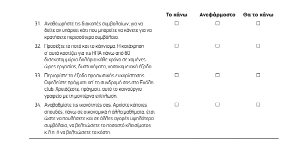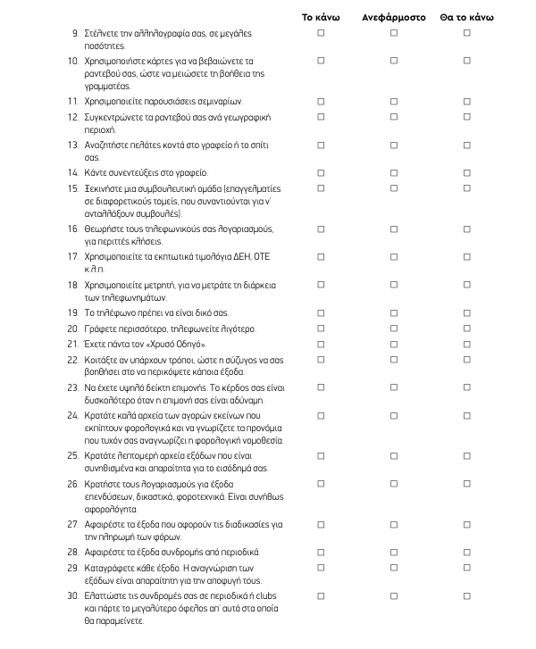 Ασφαλιστικό ΝΑΙ, 24/3/2025 - 11:21 facebook twitter linkedin Τα λεφτά είναι οι χειρότεροι αφέντες, αλλά και οι καλύτεροι υπηρέτες! Διαβάστε πώς να αποκτήσετε εισόδημα Ασφαλιστικό ΝΑΙ, 24/3/2025 facebook twitter linkedin Αναδημοσίευση από το περιοδικό Ασφαλιστικό ΝΑΙ που κυκλοφορεί (Τεύχος 212) - Στήλη 'Πωλήσεις' σελ. 94-109 Η φορολογική δήλωση του καθενός είναι ένας καθρέπτης, με όλα τα οικονομικά στοιχεία που χρειάζονται, για να δει ο οποιοσδήποτε σε ποια κατάσταση είναι. Ο κάθε άνθρωπος είναι μια μικρή ή μεγάλη επιχείρηση, όπου καταγράφεται ξεκάθαρα αν το χρήμα είναι κακός ή καλός αφέντης και κυρίως πόσο καλός υπηρέτης είναι. Εκεί φαίνεται πόσο γνωρίζει κάποιος να κερδίζει χρήματα, αλλά και πόσο καλά ξέρει να τα ξοδεύει. Στο προηγούμενο τεύχος του «ΑΣΦΑΛΙΣΤΙΚΟΥ ΝΑΙ» (211), οι αναγνώστες συνδρομητές μας διάβασαν: «Αν τα λεφτά είναι η αιτία που παρακινεί τους ανθρώπους να κάνουν κάτι» και διαπίστωσαν ότι κίνητρα είναι, μέσω των χρημάτων, η ανεξαρτησία, η αναγνώριση, η επιτυχία, ο ελεύθερος χρόνος, η δύναμη, το κύρος, τα χρήματα, η πίεση, η αυτοεκτίμηση, η ασφάλεια, η οικογενειακή ζωή και η προσωπική εξέλιξη. Το αφιέρωμα είχε 33 σελίδες και αρκετοί το κράτησαν στο αρχείο τους για εφαρμογή. Σ’ αυτό το τεύχος, προσπαθούμε να αναδείξουμε πώς ένας ασφαλιστής ή πωλητής μπορεί να οργανωθεί για να αυξήσει το εισόδημά του, πώς να περιορίσει τον χαμένο χρόνο και πώς να βάλει καλούς στόχους για το 2025. Διαβάστε το, κρατήστε το, γίνετε συνδρομητές για να έχετε αρχείο. Επιμέλεια: Ευάγγελος Γ. Σπύρου Εκδότης – Δημοσιογράφος ΠΩΣ ΝΑ ΕΚΜΕΤΑΛΛΕΥΤΕΙΤΕ ΚΑΛΥΤΕΡΑ ΤΟ ΕΙΣΟΔΗΜΑ ΣΑΣ Είστε λοιπόν δυσαρεστημένοι όταν ξοδεύετε τα χρήματά σας; Είσαστε πολλές φορές δυσαρεστημένοι με τον τρόπο που ξοδεύετε τα χρήματά σας; Εκπλήσσεστε κάθε φορά με απρόβλεπτα έξοδα, που ξεφυτρώνουν απ’ το τίποτε – όπως ένας λογαριασμός 250.000 για το βάψιμο του σπιτιού ή ένα ποσό 300.000 για φόρους ακινήτων, που πρέπει να πληρώσετε εκεί που δεν το περιμένατε; Οι διαφορές στο προσωπικό εισόδημα του καθένα είναι ένας απ τους κυριότερους λόγους των οικογενειακών καβγάδων και προστριβών. Αλλά και η έλλειψη οικονομικού προγραμματισμού, μπορεί να προκαλέσει προσωπική δυσαρέσκεια, να καταστρέψει την πίστη των άλλων και να επηρεάσει βαριά την αποδοτικότητά σας στην δουλειά. Τι χειρότερο απ’ το να ζει κάποιος υπό τη σκιά του εισοδήματος κάποιου άλλου ή να είναι μονίμως χρεωμένος; Αυτοί άλλωστε είναι και οι κυριότεροι λόγοι αποτυχίας εκείνων που έχουν προσωπικές επιχειρήσεις. Υπάρχει κάποια εύκολη λύση; Ίσως σκέφτεστε ότι όλα τα προβλήματα θα λύνονταν εάν κερδίζατε μερικά εκατομμύρια παραπάνω γι’ αυτόν το χρόνο. Και ίσως να γινόταν έτσι. Αλλά είναι πολύ πιθανό να ξαναβρεθείτε στην ίδια θέση και μετά το τέλος εκείνου του χρόνου, εκτός εάν έχετε καταστρώσει σχέδιο διαχείρισης των χρημάτων σας. Συγκεκριμένα, έρευνες έχουν δείξει ότι το να κερδίζεις λίγα εκατομμύρια παραπάνω το χρόνο δεν σημαίνει και μεγαλύτερο βαθμό οικονομικής ασφάλειας. Ο προϋπολογισμός, λοιπόν, είναι η λύση; Σ’ αυτό το σημείο σίγουρα θα λέτε στον εαυτό σας: «Πιστεύω ότι προσπαθούν να μου περάσουν την ιδέα να κρατάω ένα βιβλίο προϋπολογισμού». Κάποιοι, όσοι είστε παντρεμένοι, ίσως θα θυμάστε πως στο μακρινό παρελθόν εσείς και η σύζυγός σας είχατε αγοράσει ένα τέτοιο βιβλίο που το ενημερώνατε τακτικά. Γράφατε πόσα ξοδεύατε, ακριβώς, ακόμη και για τον καφέ ή τα γεύματα κι έτσ