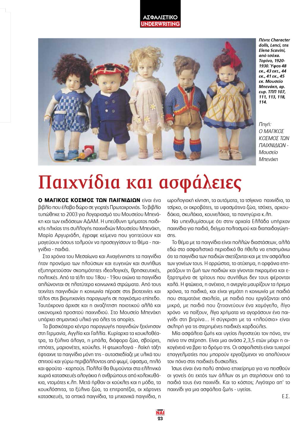 Nextdeal newsroom, 6/2/2018 - 09:31 facebook twitter linkedin Παιχνίδια και ασφάλειες Nextdeal newsroom, 6/2/2018 facebook twitter linkedin Ο μαγικός κόσμος των παιχνιδιών είναι ένα βιβλίο που έλαβα δώρο σε γιορτές Πρωτοχρονιάς. Το βιβλίο τυπώθηκε το 2003 για λογαριασμό του Μουσείου Μπενάκη και των εκδόσεων ΑΔΑΜ. Η υπεύθυνη τμήματος παιδικής ηλικίας της συλλογής παιχνιδιών Μουσείου Μπενάκη, Μαρία Αργυριάδη, έγραψε κείμενα που γοητεύουν και μαγεύουν όσους τολμούν να προσεγγίσουν το θέμα - παιγνίδια - παιδιά. Στα χρόνια του Μεσαίωνα και Αναγέννησης τα παιγνίδια ήταν προνόμιο των πλούσιων και ευγενών και συνήθως εξυπηρετούσαν σκοπιμότητες ιδεολογικές, θρησκευτικές, πολιτικές. Από τα τέλη του 18ου - 19ου αιώνα τα παιγνίδια απλώνονται σε πλατύτερα κοινωνικά στρώματα. Από τους τεχνίτες παιγνιδιών η κοινωνία πέρασε στις βιοτεχνίες και τέλος στις βιομηχανίες παραγωγής σε παγκόσμιο επίπεδο. Ταυτόχρονα άρχισε και η αναζήτηση ποιοτικού αλλά και οικονομικά προσιτού παιχνιδιού. Στο Μουσείο Μπενάκη υπάρχει σημαντικό υλικό για όλες τις απορίες. Τα βασικότερα κέντρα παραγωγής παιγνιδιών ξεκίνησαν στη Γερμανία, Αγγλία και Γαλλία. Κυρίαρχα τα κουκλοθέατρα, τα ξύλινα άλογα, η μπάλα, διάφορα ζώα, σβούρες, ιππότες, μαριονέτες, κούκλες. Η φτωχολογιά - λαϊκή τάξη έφτιαχνε τα παιγνίδια μόνη της - αυτοσχεδίαζε με υλικά του σπιτιού και γύρω περιβάλλοντος από ψωμί, ύφασμα, πηλό και φρούτα - καρπούς. Πολλοί θα θυμούνται στα ελληνικά χωριά κατασκευές αλογάκια ή ανθρώπους από κολοκυθάκια, ντομάτες κ.λπ. Μετά ήρθαν οι κούκλες και η μόδα, τα κουκλόσπιτα, τα ξύλινα ζώα, τα επιτραπέζια, οι χάρτινες κατασκευές, τα οπτικά παιγνίδια, τα μηχανικά παιγνίδια, η ωρολογιακή κίνηση, τα αυτόματα, τα τσίγκινα παιχνίδια, τα τσίρκο, οι ακροβάτες, τα υφασμάτινα ζώα, τσόχες, αρκουδάκια, σκυλάκια, κουνελάκια, τα πανηγύρια κ.λπ. Να υπενθυμίσουμε ότι στην αρχαία Ελλάδα υπήρχαν παιχνίδια για παιδιά, δείγμα πολιτισμού και διαπαιδαγώγησης. Το θέμα με τα παιγνίδια είναι πολλών διαστάσεων, αλλά εδώ στο ασφαλιστικό περιοδικό θα ήθελα να επισημάνω ότι τα παιγνίδια των παιδιών σχετίζονται και με την ασφάλεια των γονέων τους. Η αρρώστια, το ατύχημα, η ορφάνια επηρεάζουν τη ζωή των παιδιών και γίνονται πικραμένα και εξαρτημένα σε τρίτους που συνήθως δεν τους φέρονται καλά. Η φτώχεια, η ανέχεια, η ανεργία μαυρίζουν τα ήρεμα χρόνια, τα παιδικά, και είναι γεμάτη η κοινωνία με παιδιά που σταματάνε σχολεία, με παιδιά που εργάζονται από μικρά, με παιδιά που ζητιανεύουν ένα χαμόγελο, λίγο χρόνο να παίξουν, λίγα χρήματα να αγοράσουν ένα παιγνίδι στη βιτρίνα... Η σύγκριση με τα «πλούσια» είναι σκληρή για τις στερημένες παιδικές καρδούλες. Μία ασφάλεια ζωής και υγείας λιγοστεύει τον πόνο, την πείνα την στέρηση. Είναι μια ανάσα 2,3,5 ετών μέχρι η οικογένειά να βρει το δρόμο της. Οι ασφαλιστές είναι τυχεροί επαγγελματίες που μπορούν εργαζόμενοι να απαλύνουν τον πόνο στις παιδικές δυσκολίες. Ίσως είναι ένα πολύ σπάνιο επιχείρημα για να πεισθούν οι γονείς ότι εκτός των άλλων ας μη στερήσουν από τα παιδιά τους ένα παιχνίδι. Και το κόστος; Λιγότερο απ' το παιχνίδι για μια ασφάλεια ζωής - υγείας. Ε.Σ. Ακολουθήστε το Nextdeal.gr στο Google News .