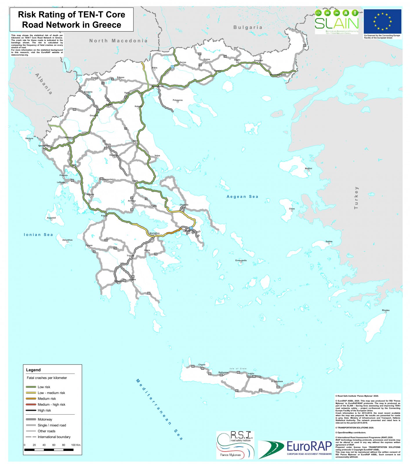 Nextdeal newsroom, 26/1/2021 - 15:42 facebook twitter linkedin Οι πιο επικίνδυνοι δρόμοι στην Ελλάδα σύμφωνα με το ΙΟΑΣ Nextdeal newsroom, 26/1/2021 facebook twitter linkedin H Οδική Ασφάλεια στο επίκεντρο. Προτάσεις για την Οδική Ασφάλεια στο Υπουργείο Υποδομών και Μεταφορών από το Ινστιτούτο Οδικής Ασφάλειας (Ι.Ο.ΑΣ.) «Πάνος Μυλωνάς» και παράδοση των χαρτών επικινδυνότητας του Διευρωπαϊκού Οδικού Δικτύου της χώρας από το Ευρωπαϊκό συγχρηματοδοτούμενο έργο SLAIN Παρουσίαση προτάσεων για την Οδική Ασφάλεια και παράδοση των χαρτών επικινδυνότητας του Διευρωπαϊκού Οδικού Δικτύου της χώρας πραγματοποιήθηκε στο Υπουργείο Υποδομών και Μεταφορών από το Ινστιτούτο Οδικής Ασφάλειας (ΙΟΑΣ) «Πάνος Μυλωνάς». Οι χάρτες που παραδόθηκαν αφορούν στο έργο SLAIN (Saving Lives Assessing and Improving TEN-T Road Network Safety), που εκπονείται από το Ινστιτούτο Οδικής Ασφάλειας «Πάνος Μυλωνάς» σε συνεργασία με το διεθνή Οργανισμό EuroRAP και εταίρους από την Ιταλία, Ισπανία και Κροατία, και συγχρηματοδοτείται από την Ευρωπαϊκή Κοινότητα μέσω του Προγράμματος CEF (Connecting Europe Facility 2014-2020), με τη σύμφωνη γνώμη του Υπουργείου Υποδομών και Μεταφορών. Το έργο έχει ως αντικείμενο την Οδική Ασφάλεια και ως αποτέλεσμα (μεταξύ άλλων) τη δημιουργία χάρτη κατάταξης επικινδυνότητας του Διευρωπαϊκού Οδικού Δικτύου της Ελλάδας. Η εν λόγω δράση είναι συμβατή με την οδηγία 2008/96 του Ευρωπαϊκού Κοινοβουλίου (που έχει ενσωματωθεί στην Ελληνική Νομοθεσία με το ΠΔ 104/2011 (ΦΕΚ 237/Α/7-11-2011)) αλλά και με την αναθεώρησή της 2019/1936/EK όπου προβλέπεται η αξιολόγηση οδικής ασφάλειας οδικών δικτύων. Η δημιουργία των χαρτών επικινδυνότητας και ο υπολογισμός των σχετικών δεικτών πραγματοποιήθηκε σύμφωνα με τη διεθνή μεθοδολογία EuroRAP και αναφέρεται στο Διευρωπαϊκό Οδικό δίκτυο της περιόδου 2015-2018 με τα αντίστοιχα διαθέσιμα στοιχεία). Η μεθοδολογία αυτή είναι πλήρως συμβατή και αποδεκτή από τη νέα Ευρωπαϊκή Οδηγία αλλά και άλλους διεθνείς οργανισμούς (WHO, World Bank). Δίνεται έτσι η δυνατότητα άμεσης σύγκρισης μεταξύ διαφορετικών χωρών, καθώς η ίδια μεθοδολογία εφαρμόζεται διεθνώς, σε περισσότερες από 100 χώρες μέχρι σήμερα. Οι δύο χάρτες που δημιουργήθηκαν στο πλαίσιο του έργου SLAIN αφορούν στην πυκνότητα των συμβάντων και στο δείκτη επικινδυνότητας, που αποτελούν το συλλογικό και το ατομικό επίπεδο επικινδυνότητας των χρηστών της οδού, αντίστοιχα. Η επικινδυνότητα αναπαρίσταται με διαφορετικές χρωματικές αποχρώσεις (μαύρο-κόκκινο-πορτοκαλί-κίτρινο-πράσινο, από το υψηλότερο προς το χαμηλότερο επίπεδο επικινδυνότητας - βλ. συνημμένους χάρτες). Από τη σύγκριση των στοιχείων των τροχαίων συμβάντων της υπό θεώρηση 4ετούς περιόδου συμπεραίνεται το θετικό αποτέλεσμα της βελτίωσης της Οδικής Ασφάλειας. Για άλλη μια φορά αναδεικνύεται ο καθοριστικός ρόλος που έχει διαδραματίσει το δίκτυο των αυτοκινητοδρόμων στην Ελλάδα όσον αφορά στη μείωση των δεικτών είκινδυνότητας - το ποσοστό των δρόμων με χαμηλό έπίπεδο επικινδυνότητας έχει βελτιωθεί από 12% σε 87% του συνόλου του βασικού Διευρωπαϊκού Δικτύου. Η Πρόεδρος του Ινστιτούτου, κα Βασιλική Δανέλλη-Μυλωνά, και στελέχη του Ι.Ο.ΑΣ. «Πάνος Μυλωνάς», παρέδωσαν στο Υπουργείο Υποδομών & Μεταφορών τους χάρτες επικινδυνότητας, με την Ελλάδα να τεκμηριώνει στους Ευρωπαϊκούς θεσμούς την τήρηση των υποχρεώσεών της. Όπως δήλωσε ο Υφυπουργός Υποδομών και Μεταφορών, κ. Γιάννης Κεφαλογιάννης, «η οδική ασφάλεια είναι ζήτημα ύψιστης προτεραιότητα