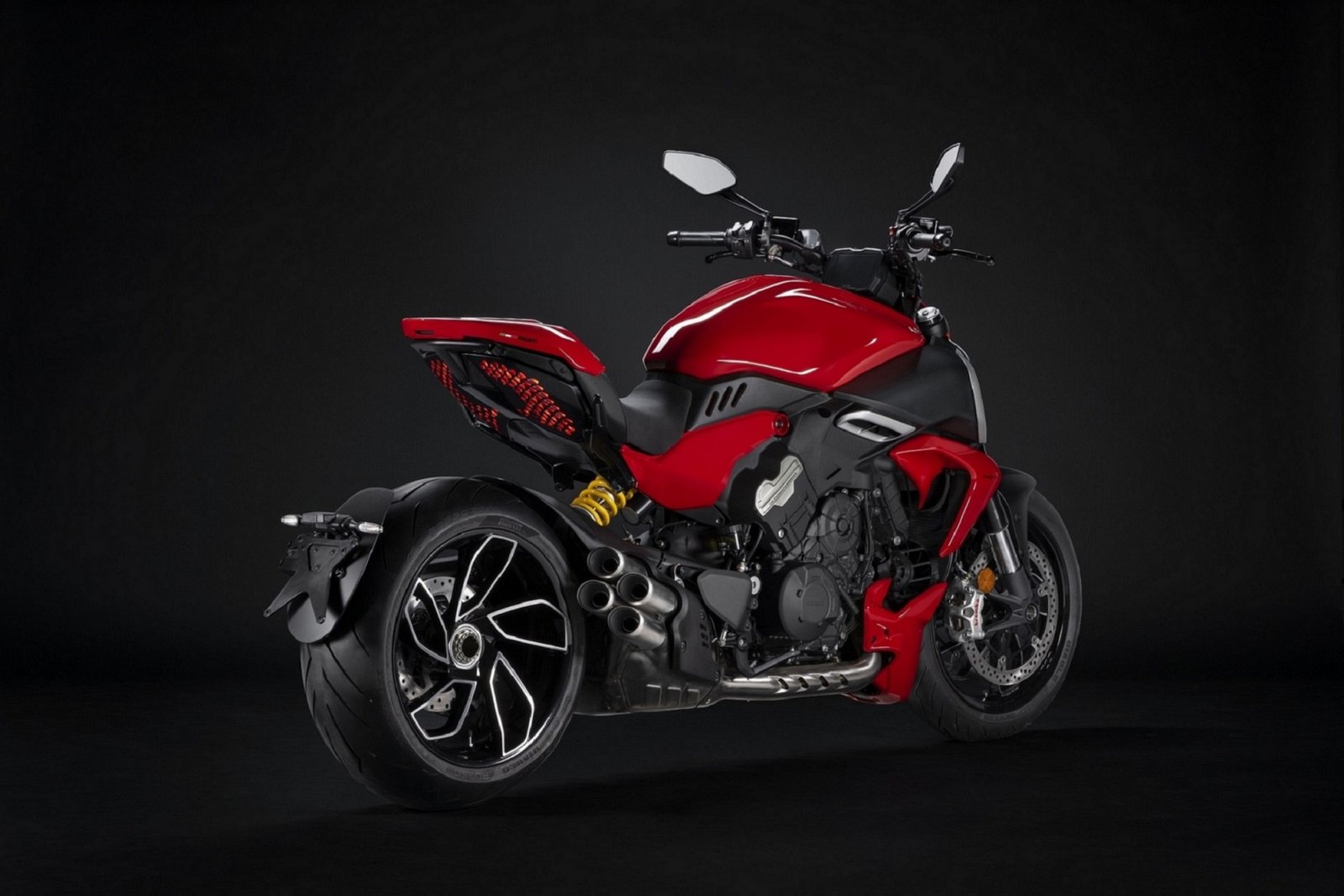 Nextdeal newsroom, 1/11/2022 - 11:06 facebook twitter linkedin Η νέα Diavel γίνεται V4! Nextdeal newsroom, 1/11/2022 facebook twitter linkedin Στο έκτο επεισόδιο της διαδικτυακής σειράς Ducati World Première 2023, η Ducati αποκάλυψε τη νέα Diavel V4 (δείτε το video εδώ). Η νέα Ducati Diavel V4 είναι μοναδική, άμεσα αναγνωρίσιμη και με εκρηκτική προσωπικότητα. Με την ενσωμάτωση του εξελιγμένου κινητήρα V4 Granturismo, οι επιδόσεις της νέας Diavel γίνονται ακόμα πιο καταιγιστικές και η οδήγησή της αγγίζει νέα επίπεδα απόλαυσης. Ο κινητήρας V4 των 1.158 cc, με τους 168 ίππους και τα 12,8 kgm ροπής, είναι ο ιδανικός κινητήρας για ένα muscle bike, ικανός να συνδυάζει τη γραμμικότητα στις χαμηλές στροφές με την υψηλή ροπή σε όλο το φάσμα της λειτουργίας του. Μυώδης, σπορ, άκρως εντυπωσιακή και ταυτόχρονα κομψή σε εμφάνιση, ικανή να μαγνητίζει την προσοχή όπου και αν σταθεί, η νέα Diavel V4 συνθέτει φαινομενικά ασύμβατα μεταξύ τους τεχνικά, δυναμικά και στυλιστικά χαρακτηριστικά, όπως αυτά των σπορ naked bikes και των muscle cruises. Με αυτόν τον τρόπο ανταποκρίνεται στις επιθυμίες πολλών διαφορετικών μοτοσυκλετιστών. Από τους λάτρεις της σπορ οδήγησης που αναζητούν μια πιο άνετη και στυλάτη μοτοσυκλέτα, μέχρι εκείνους που την απολαμβάνουν σε ένα πιο αστικό και χαλαρό περιβάλλον αλλά και τους φανατικούς των επιδόσεων και της φιλοσοφίας που σχετίζεται με τους αγώνες dragster. Η Ducati Diavel V4 εκπλήσσει με τις δυναμικές και απολαυστικές επιδόσεις της, με την ικανότητά της να ικανοποιεί στην οδήγηση σε κάθε είδους δρόμο και να ενθουσιάζει με εντυπωσιακή επιτάχυνση και επιβράδυνση. Εξίσου απολαυστική είναι όταν κινείται και με χαμηλές ταχύτητες σε ένα αστικό cruising, καθώς η μοναδική της εμφάνιση δεν θα περάσει από πουθενά απαρατήρητη. Ακόμα περισσότερο, εκπλήσσει με την ικανότητά της στα ταξίδια μικρών-μεσαίων αποστάσεων, με πραγματικά εκπληκτική άνεση για αναβάτη και επιβάτη. Σχεδίαση που ξεχωρίζει Η νέα Diavel V4 καθηλώνει με την παρουσία της από την πρώτη κιόλας ματιά, καθιστώντας αδύνατο να περάσει απαρατήρητη. Μυώδης, επιβλητική, με τους φαρδιούς «ώμους» και την επιδεικτική τετραπλή εξάτμιση να φανερώνει αμέσως την μοναδική αρχιτεκτονική του κινητήρα. Η νέα Diavel V4 αντλεί έμπνευση από τα muscle cars, από την αισθητική των super heroes και αναπαράγει την εικόνα ενός αθλητή έτοιμου να εκκινήσει σε έναν αγώνα σπριντ, με όλες τις μάζες τις μοτοσυκλέτας συγκεντρωμένες στο μπροστινό μέρος, αφήνοντας στο πίσω μία ανάλαφρη και ευκίνητη ουρά. Τα χαρακτηριστικά εμπρός και πίσω φώτα και τα φλας, τεχνολογίας Full-LED, συμβάλλουν επίσης στη μοναδική εμφάνιση της νέας Diavel V4. Τα εμπρός φώτα ημέρας (DRL*) διαθέτουν νέα σχεδίαση, με το διπλό μοτίβο σε σχήμα C το οποίο θα γίνει επαναλαμβανόμενο στυλιστικό γνώρισμα στις naked μοτοσυκλέτες της Ducati. Τα πίσω φωτιστικά σώματα αποτελούνται από ένα πάνελ με διακεκομμένα LED τα οποία είναι τοποθετημένα κάτω από την ουρά, και πάλι με την χαρακτηριστική οπτική "υπογραφή" της Diavel. Πρόκειται για ένα αποκλειστικό και ιδιαίτερα εντυπωσιακό εφέ που κάνει τη μοτοσυκλέτα άμεσα αναγνωρίσιμη. Τα δυναμικά φλας είναι ενσωματωμένα στο τιμόνι, μπροστά από τα ρεζερβουάρ του φρένου και του συμπλέκτη. Ένα ακόμα βασικό χαρακτηριστικό της νέας Diavel, το τεράστιο πίσω ελαστικό διαστάσεων 240/45, παραμένει και σε αυτή την έκδοση. Οι τροχοί είναι πέντε ακτίνων με προφίλ διακοσμημένο από κατεργασμένες επιφάνειες και αποτελούν ένα από τα πιο εκλεπτυσμένα και χαρακτηριστικά στοιχεία της αισθητικής τη