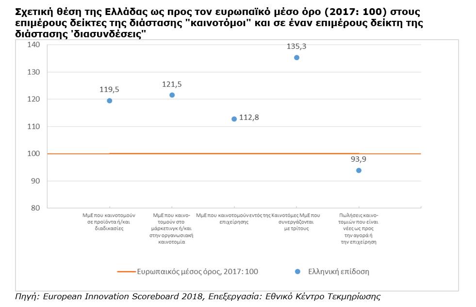 Nextdeal newsroom, 4/7/2018 - 13:22 facebook twitter linkedin Καινοτομία: Βελτίωση επιδόσεων σε Ελλάδα και Ε.Ε. Nextdeal newsroom, 4/7/2018 facebook twitter linkedin Μια διαρκώς βελτιούμενη πορεία των επιδόσεων καινοτομίας εμφανίζει η Ελλάδα, με βάση τα πιο πρόσφατα ευρήματα του Ευρωπαϊκού Πίνακα Αποτελεσμάτων Καινοτομίας 2018 (European Innovation Scoreboard, EIS) αναφορικά με τον συνθετικό δείκτη καινοτομίας από το 2014 μέχρι σήμερα. Αντίστοιχη βελτίωση καταγράφεται και σε επιμέρους διαστάσεις της καινοτομίας και έρευνας & ανάπτυξης, με τη χώρα να συγκλίνει προς τον ευρωπαϊκό μέσο όρο. Το συμπέρασμα αυτό προκύπτει από την ανάλυση των στοιχείων του EIS που αφορούν την Ελλάδα, την οποία πραγματοποίησε το Εθνικό Κέντρο Τεκμηρίωσης (ΕΚΤ). Η ανάλυση έχει σκοπό να διευκολύνει την κατανόηση των περίπλοκων πρωτογενών συνθετικών πινάκων που αφορούν τη χώρα (όπως αυτοί δημοσιεύονται στο αντίστοιχο country report για την Ελλάδα) και την επακόλουθη ενίσχυση του σχετικού δημόσιου διαλόγου. Ο Ευρωπαϊκός Πίνακας Αποτελεσμάτων Καινοτομίας (ΕIS) του 2018, ο οποίος δημοσιεύτηκε στις 22 Ιουνίου από την Ευρωπαϊκή Επιτροπή, παρουσιάζει τις σχετικές επιδόσεις των κρατών μελών για το έτος 2017, λαμβάνοντας υπόψη 27 διαφορετικούς δείκτες. Μέσω της ετήσιας δημοσίευσης του EIS από το 2000 μέχρι σήμερα, παρέχεται η δυνατότητα συγκριτικής αποτίμησης των ερευνητικών και καινοτομικών επιδόσεων των ευρωπαϊκών κρατών μελών (καθώς και κάποιων τρίτων χωρών), αναδεικνύοντας έτσι τις ισχυρές και ασθενείς διαστάσεις του ερευνητικού και καινοτομικού τους συστήματος. Επιπλέον, μέσω της δημοσίευσης των ευρημάτων ωθούνται τα κράτη μέλη να σταθμίσουν ή/και να ιεραρχήσουν τις περιοχές στις οποίες θα πρέπει να εστιάσουν τις προσπάθειές τους ώστε να βελτιώσουν περαιτέρω αυτές τις επιδόσεις. Σύμφωνα με τα ευρήματα του 2018, η συνολική ευρωπαϊκή επίδοση στην καινοτομία συνεχίζει να αυξάνεται, ενώ ο ρυθμός αυτής της βελτίωσης έχει επιταχυνθεί τα τελευταία έτη. Αποτέλεσμα είναι ότι η ΕΕ μειώνει την απόσταση που τη χωρίζει από βασικούς ανταγωνιστές, όπως ο Καναδάς, η Ιαπωνία και οι Ηνωμένες Πολιτείες. Απαιτούνται όμως περαιτέρω προσπάθειες για τη διασφάλιση της ανταγωνιστικότητας σε παγκόσμια κλίμακα. Στο επίπεδο των κρατών μελών, η Σουηδία βρίσκεται για μια ακόμη φορά στην πρώτη θέση, ακολουθούμενη από τη Δανία, τη Φινλανδία, τις Κάτω Χώρες, το Ηνωμένο Βασίλειο και το Λουξεμβούργο, που εντάσσεται φέτος στην ομάδα των κορυφαίων στην καινοτομία. Η θέση της Ελλάδας Λαμβάνοντας υπόψη ότι τα κράτη μέλη κατηγοριοποιούνται σε τέσσερις κατηγορίες και κατατάσσονται σύμφωνα με έναν συνθετικό δείκτη καινοτομίας (Summary Innovation Index), η Ελλάδα κατατάσσεται στην ομάδα των χωρών με "Μέτριες επιδόσεις στην καινοτομία" με βάση τη συνολική της επίδοση σε όλο το φάσμα των δεικτών έρευνας, καινοτομίας, ανθρώπινου δυναμικού, δομής της οικονομίας, επιχειρηματικότητας του EIS, καταλαμβάνοντας την 22η θέση. Σημειώνεται ότι σε αυτή την κατηγορία κατατάσσεται διαχρονικά η χώρα. Συνολικά και σε σχέση με τον ευρωπαϊκό μέσο όρο (2010: 100), η Ελλάδα εμφανίζει μία διαρκώς βελτιούμενη πορεία που ξεκινά από το 2014 έως το πιο πρόσφατο έτος (2017), με τον συνθετικό δείκτη καινοτομίας να αυξάνεται από 62 σε 69 μονάδες βάσης. Πιο αναλυτικά, οι διαστάσεις του συνθετικού δείκτη καινοτομίας στις οποίες η χώρα παρουσιάζεται ως πιο "δυνατή" είναι τα "ελκυστικά ερευνητικά συστήματα", οι "καινοτόμοι" και οι "διασυνδέ