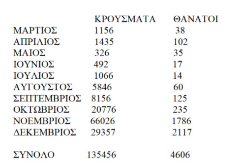 Άρης Μπερζοβίτης, 28/12/2020 - 12:49 facebook twitter linkedin Ο τραγικός απολογισμός της πανδημίας που άλλαξε τη ζωή μας Άρης Μπερζοβίτης, 28/12/2020 facebook twitter linkedin Μέχρι σήμερα παγκοσμίως 81 εκ. κρούσματα και 1,8 εκατ. νεκροί, στην Ελλάδα 135.000 κρούσματα και 4.600 νεκροί Ήταν Πέμπτη 9 Ιανουαρίου 2020, όταν στην πόλη Wuhan στην Κίνα εμφανίστηκε συρροή κρουσμάτων πνευμονίας. Οι υγειονομικές αρχές της Κίνας ανακοίνωσαν ότι πρόκειται για νέο στέλεχος κορονοϊού (SARS-Cov-2), που προκαλεί τη λοίμωξη COVID-19 και έθεσαν αμέσως σε καραντίνα όλους τους κατοίκους. Όμως παρά τα άμεσα μέτρα ο ιός είχε ήδη ξεφύγει και ραγδαία εξαπλώθηκε σε όλες τις χώρες. Ο νέος κορονοϊός έμελλε πλέον να αλλάξει τις ζωές όλων των ανθρώπων του πλανήτη, προσβάλλοντας στη διάβα του μέχρι σήμερα περισσότερους από 81 εκ. ανθρώπους, αφήνοντας ένα θανατηφόρο αποτύπωμα με περισσότερους από 1.800.000 νεκρούς, ξεκληρίζοντας εκατομμύρια οικογένειες και αφήνοντας χρόνια προβλήματα σε εκατομμύρια ασθενείς που νόσησαν και ανάρρωσαν. Τίποτα πλέον δεν είναι ίδια, όπως πριν. Ο τρόμος και ο φόβος κυριαρχούν στην καθημερινότητα μας. Βλέπουμε κάποιον να έρχεται προς το μέρος μας και αλλάζουμε πεζοδρόμιο, σταματήσαμε να αγκαλιάζουμε και να φιλάμε τους δικούς μας ανθρώπους, τους φίλους μας τους χαιρετάμε πλέον από μακριά ή στην καλύτερη περίπτωση με τον αγκώνα μας, το χαμόγελο μας χάθηκε, αποφεύγουμε να συναντάμε ακόμη και τους γονείς μας για να τους προστατεύσουμε. Η ζωή μας έγινε πια διαδικτυακή, παππούδες και γιαγιάδες «αγκαλιάζουν» και «φιλούν» τα εγγόνια τους αγγίζοντας την οθόνη του τηλεφώνου ή του υπολογιστή. Δεν μπορούμε πια να έχουμε κόσμο στα σπίτια μας να γιορτάσουμε, να χαρούμε, αλλά ούτε καν να αποχαιρετήσουμε τους δικούς μας ανθρώπους στο τελευταίο τους ταξίδι. Μέσω ίντερνετ εργαζόμαστε, συσκεπτόμαστε, όσοι από μας μπορούν, γιατί η πλειοψηφία των ανθρώπων έχει μείνει άνεργη με τόσες επιχειρήσεις κλειστές και χρεωκοπημένες. Η κυκλοφορία απαγορεύεται και για να κυκλοφορήσουμε πρέπει να στείλουμε ειδικό μήνυμα. Ζούμε σκηνές πολέμου με τη διαφορά ότι αντί για ορατό εχθρό έχουμε έναν ιό να εξαπολύει τις δικές του αόρατες «σφαίρες». Οι χώρες που επλήγησαν περισσότερο ήταν κατά σειρά οι ΗΠΑ με 18 εκ. κρούσματα και 320.000 θανάτους, η Ινδία με 10 εκ. κρούσματα και 146.000 θανάτους, η Βραζιλία με 726.000 κρούσματα και 187.000 θανάτους, η Ρωσία με 2,8 εκ. κρούσματα και 50.000 θανάτους, η Γαλλία με 2,5 εκ. κρούσματα και 61.000 θανάτους, το Ηνωμένο Βασίλειο με 2 εκ. κρούσματα και 67.000 θανάτους, η Τουρκία με 2 εκ. κρούσματα και 18.000 θανάτους, η Ιταλία με 1,9 εκ. κρούσματα και 69.000 θανάτου, η Ισπανία με 1,8 εκ. κρούσματα και 49.000 θανάτους και η Αργεντινή με 1,5 εκ. κρούσματα και 41.000 θανάτους. Ήταν αναμενόμενο ότι ο κορονοϊός θα «χτυπούσε» και τη δική μας πόρτα, κάνοντας την εμφάνιση του από την Τετάρτη 26 Φεβρουαρίου. Η πλειοψηφία των κρουσμάτων που σημειώθηκαν τις πρώτες ημέρες σχετιζόταν με ανθρώπους που ταξίδεψαν στην Ιταλία και με μια ομάδα προσκυνητών που είχαν ταξιδέψει στο Ισραήλ και την Αίγυπτο, καθώς και επαφές των ατόμων αυτών. Με την έγκαιρη καραντίνα που επιβλήθηκε από τα μέσα Μαρτίου (μέχρι τις αρχές Μαΐου) δεν είδαμε τις τραγικές σκηνές με τα στιβαγμένα σωρό φέρετρα που καταγράφηκαν σε άλλες χώρες. Ωστόσο στην πορεία, λάθη, παραλείψεις και υπέρμετρη αισιοδοξία έδωσαν την ευκαιρία στον κορονοϊό να δείξει πιο δυναμικά το πρόσωπο του. Έτσι μετά το καλοκαίρι ε